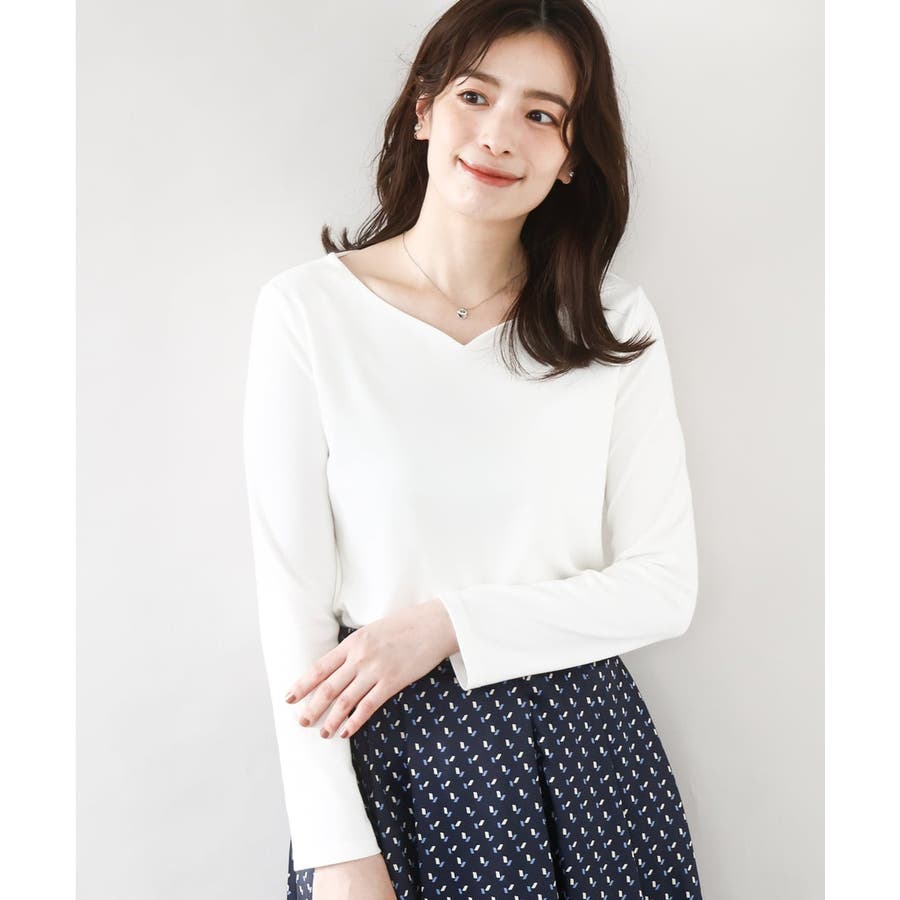 ハートネックコットンカットソー/洗える/WEB限定サイズあり