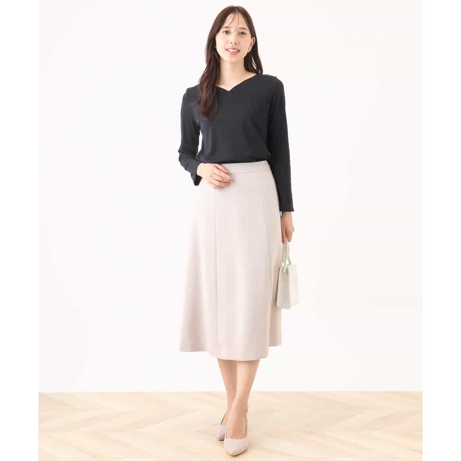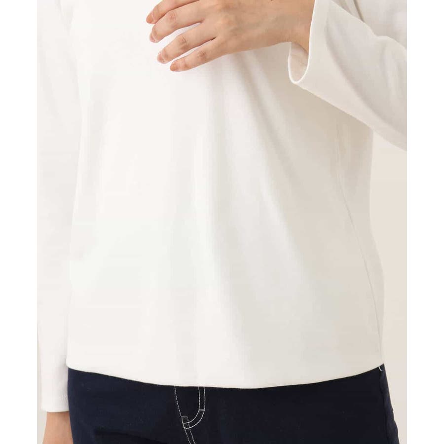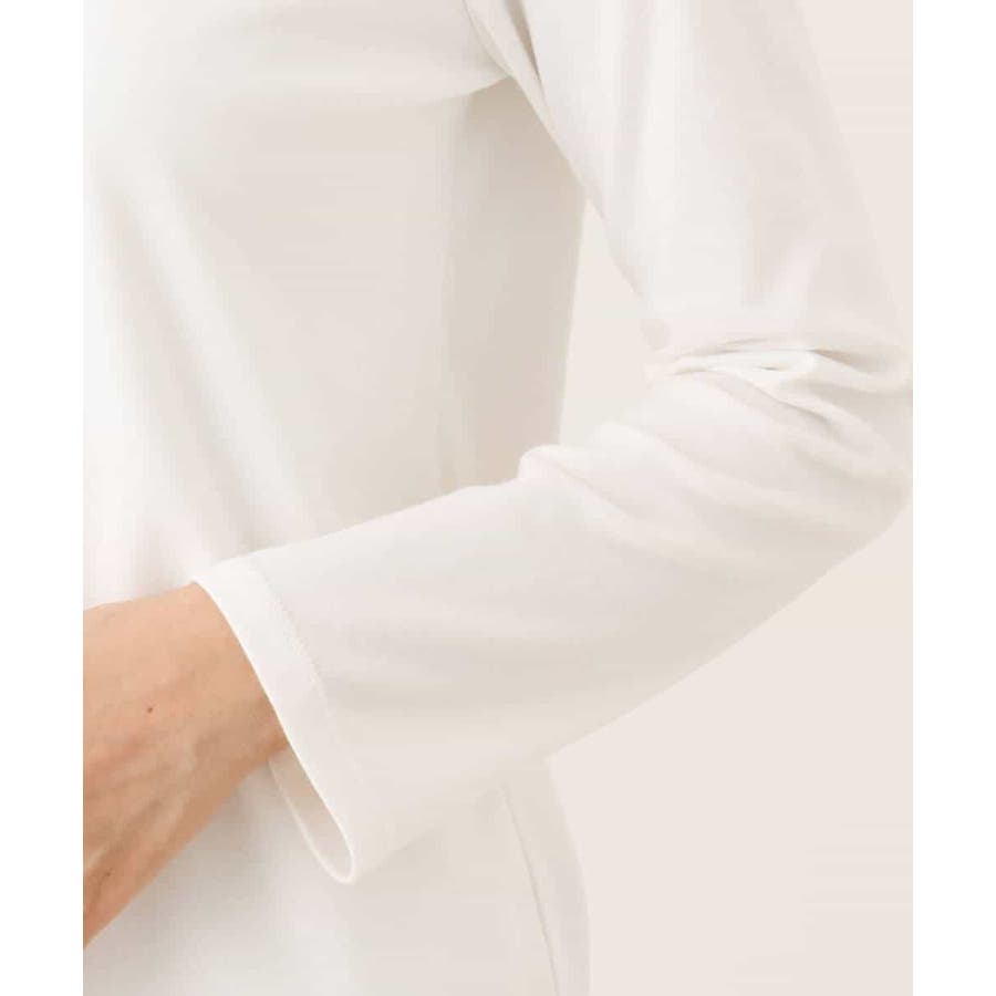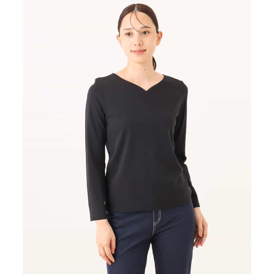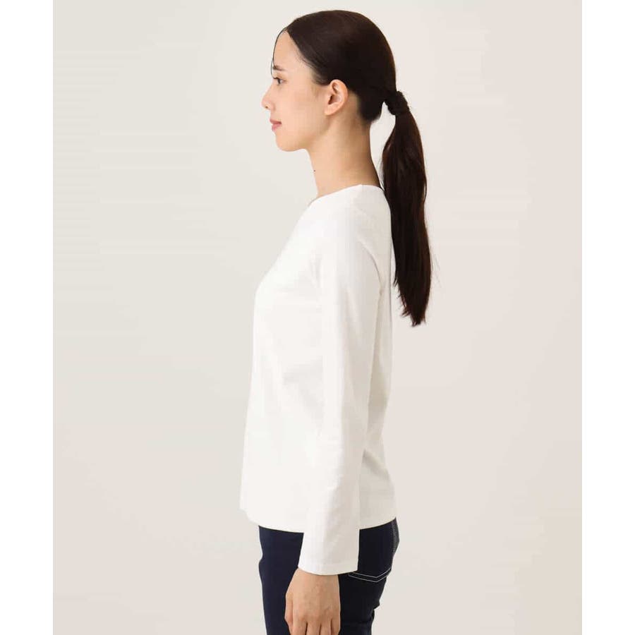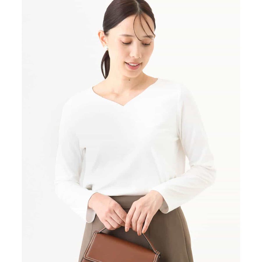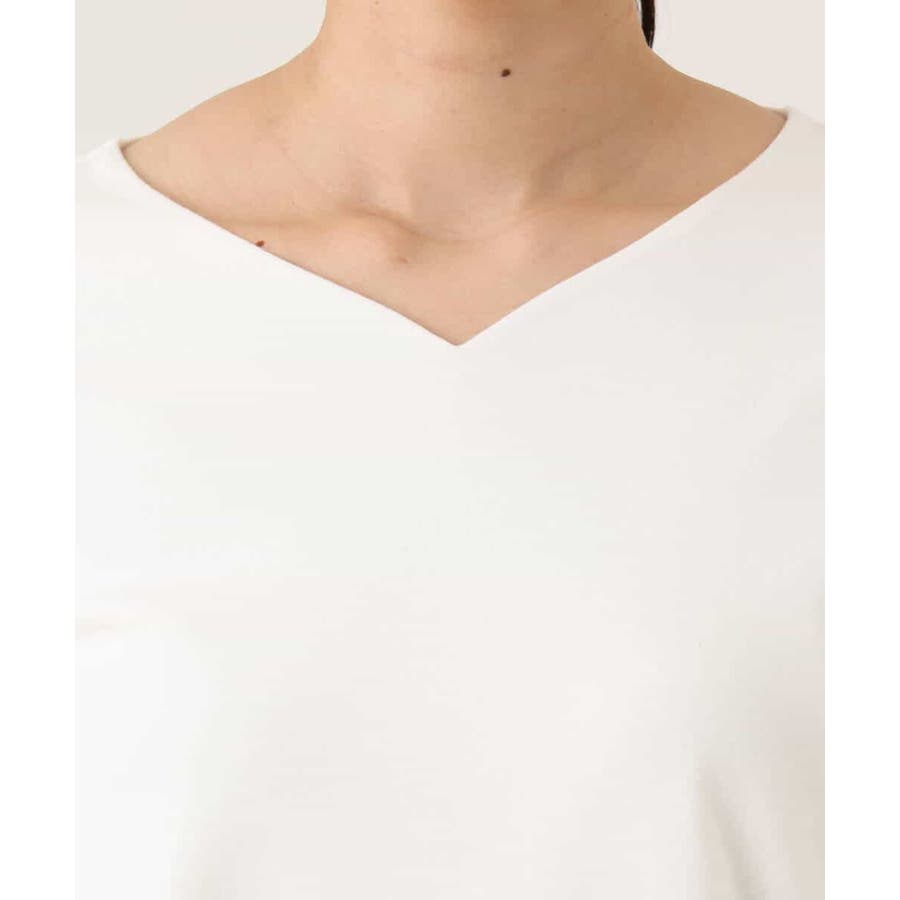 デコルテをきれいに見せてくれるハートネックがポイントのシンプルなインナーカットソー。前身頃のみ二重仕立てになっているため、ボディラインを拾いにくく、透けにくいのはもちろん、衿元と裾にステッチのないすっきりとした仕上がりが魅力です。