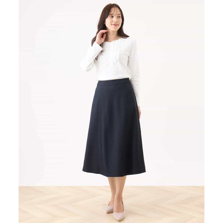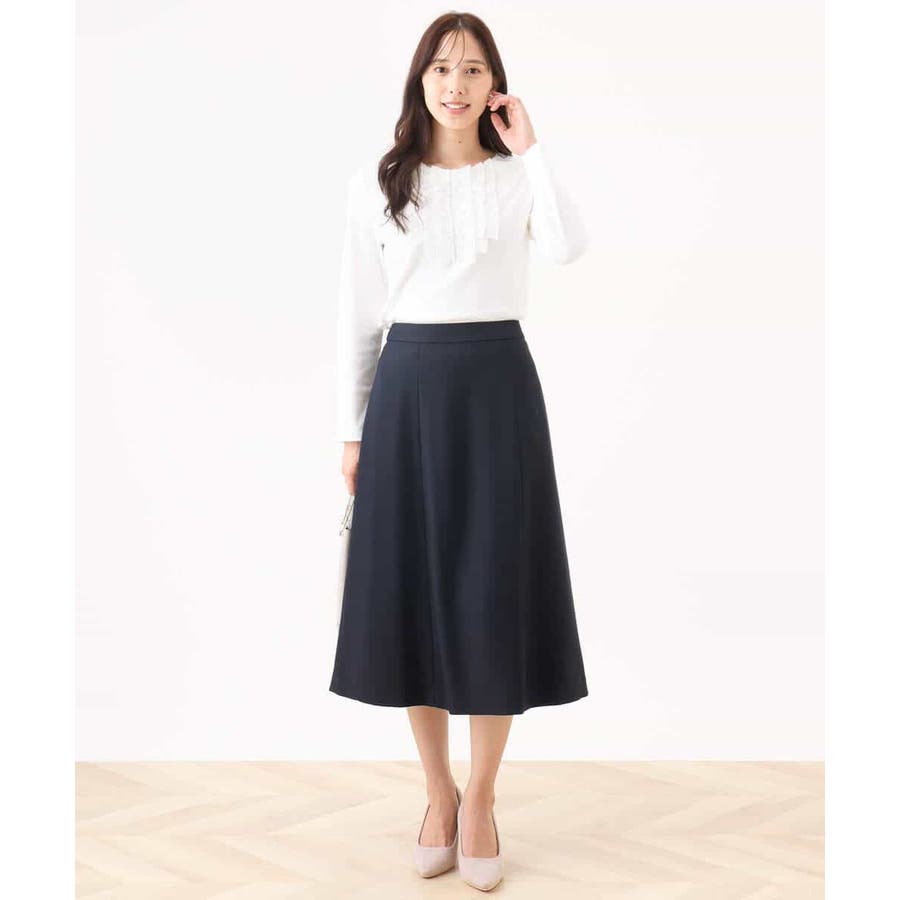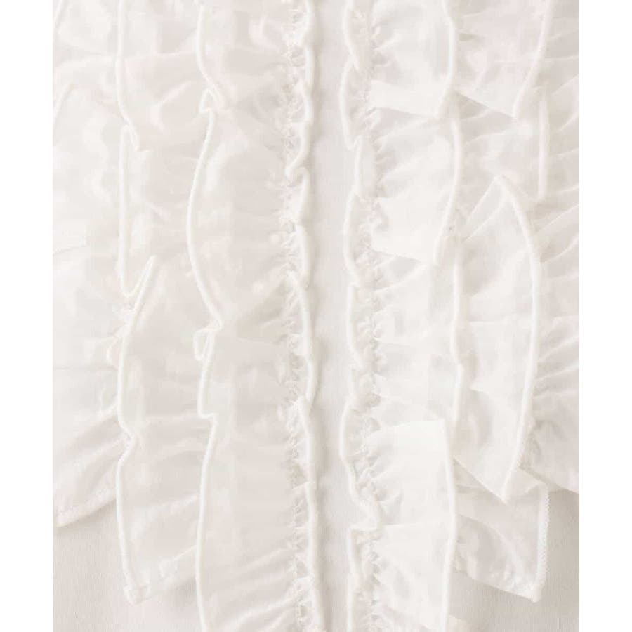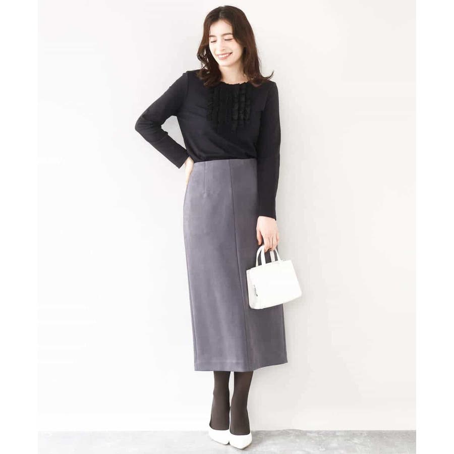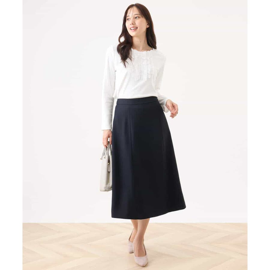 胸元のミニフリルディテールでジャケットインナーにも華やかなカットソー。フリル部分は薄手で微光沢が上品な別布仕立てになっています。裾脇のスリットでトップスアウトでも決まるデザインです。