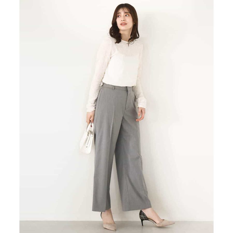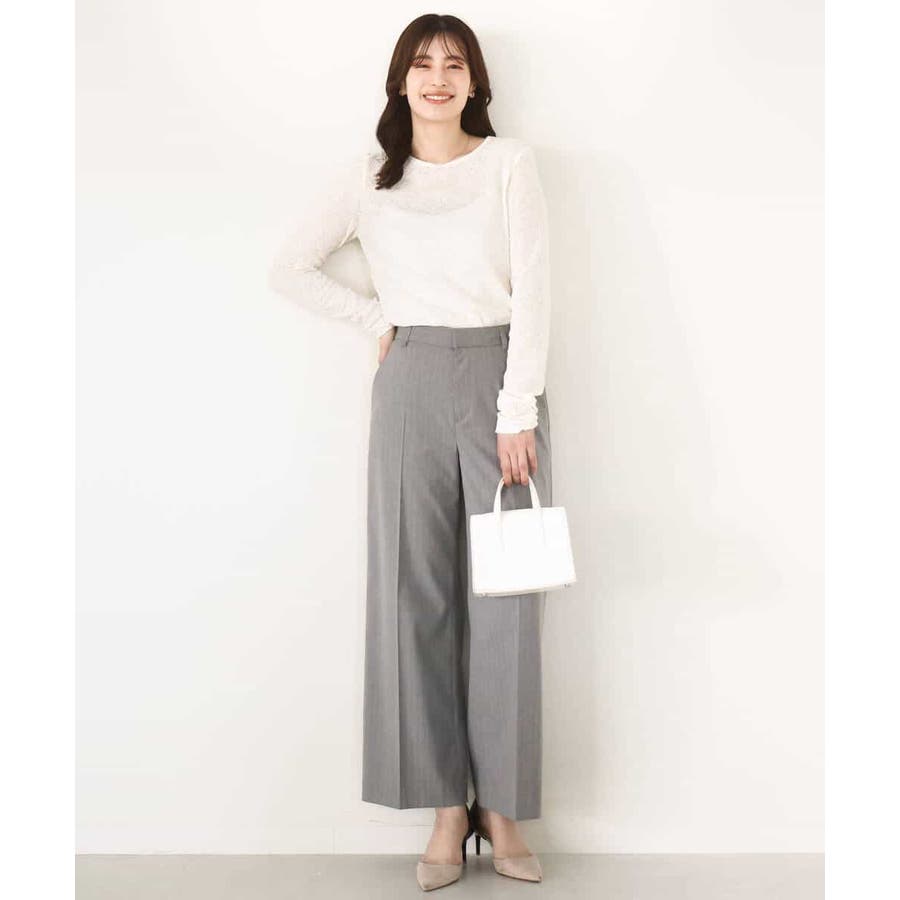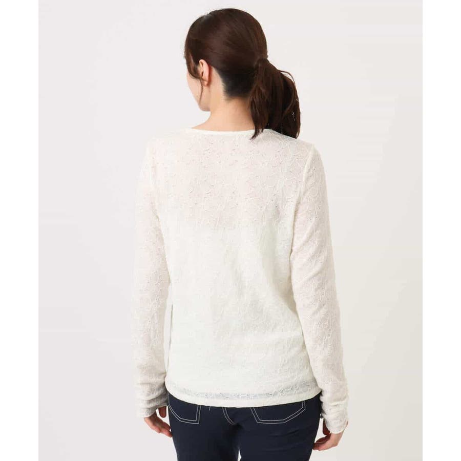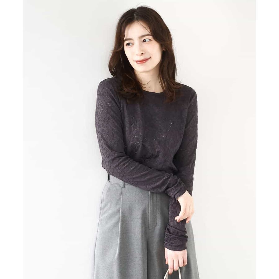 伸縮性のあるフラワーレース素材のカットソー。繊細すぎずきれいめもカジュアルもどちらにも相性◎。ほんのり透け感あり。