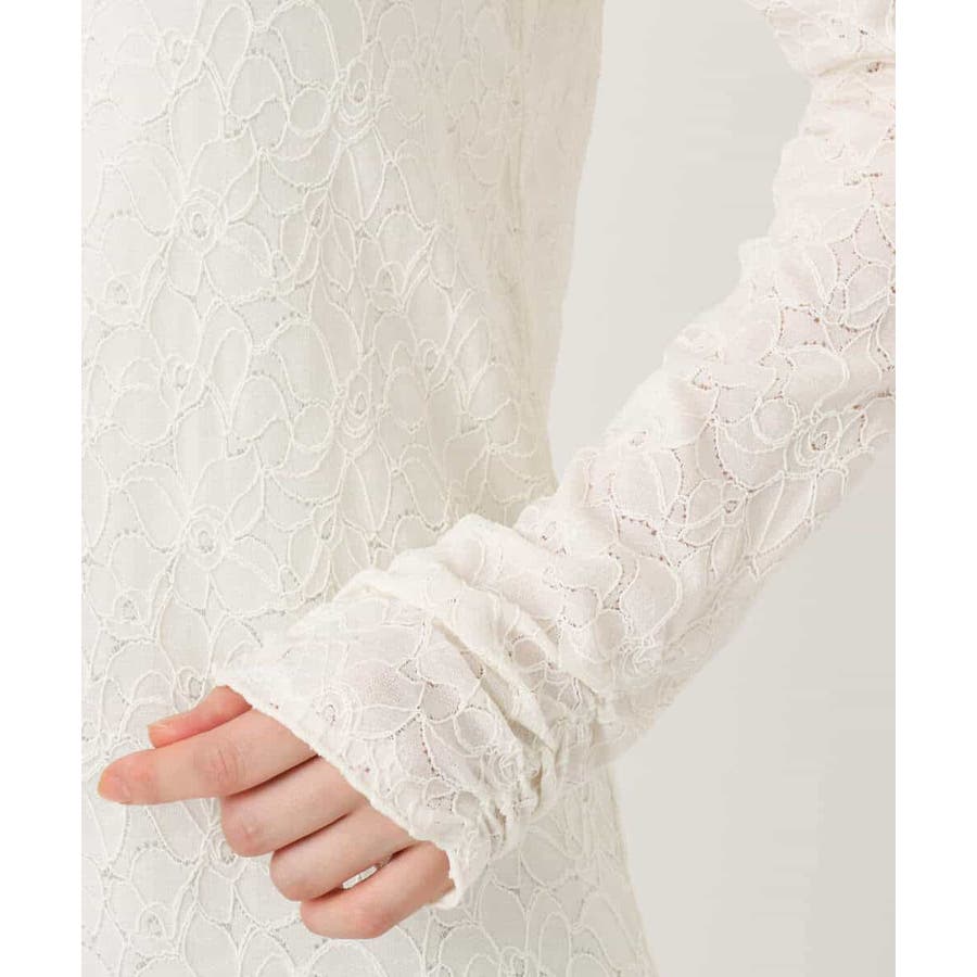 着心地抜群のレースの長袖トップス。袖口にゴムシャーリングのディティールが入ったシンプルなデザインは、一枚着としてもインナーアイテムとしても幅広く着回せます。
