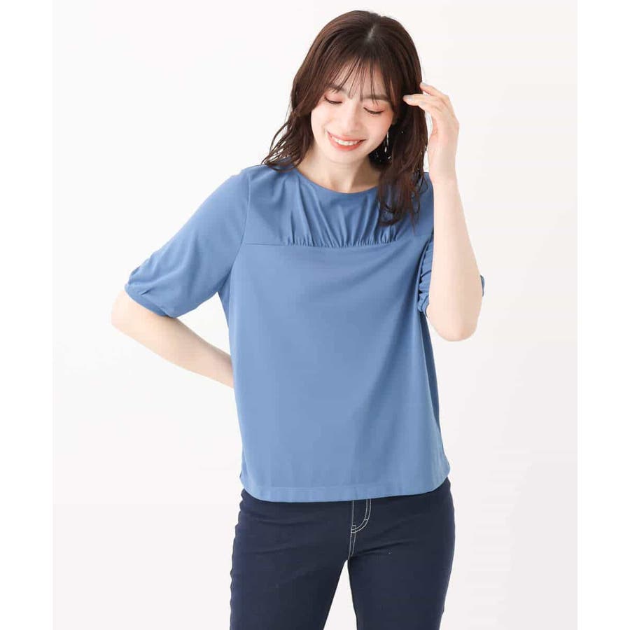 ギャザーデザインカットソー/接触冷感・UVカット/洗える/WEB限定サイズあり