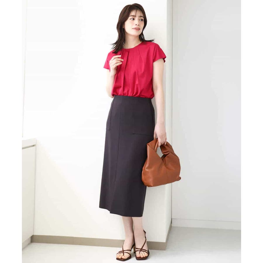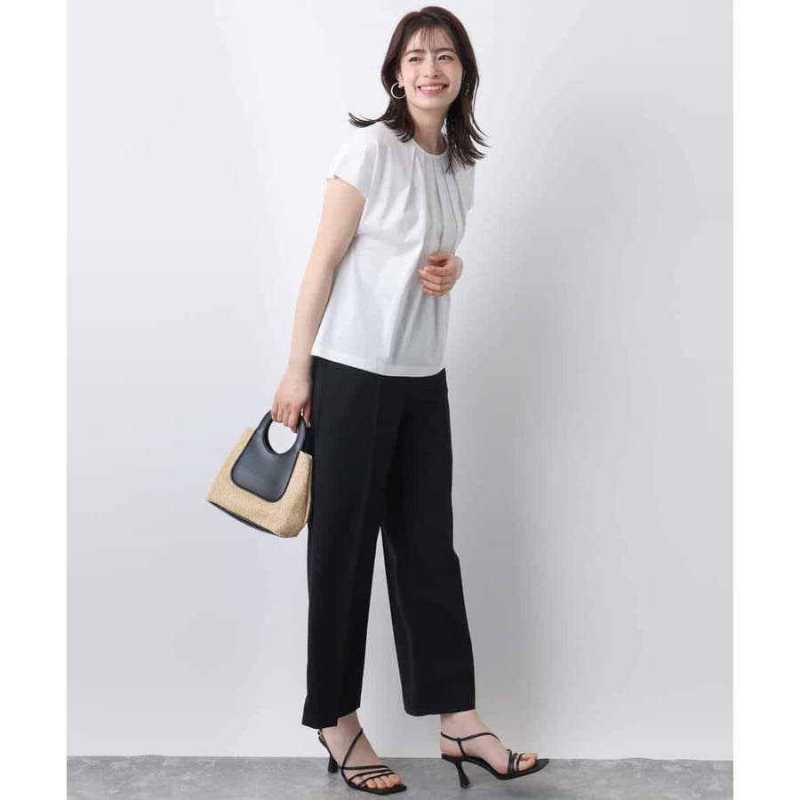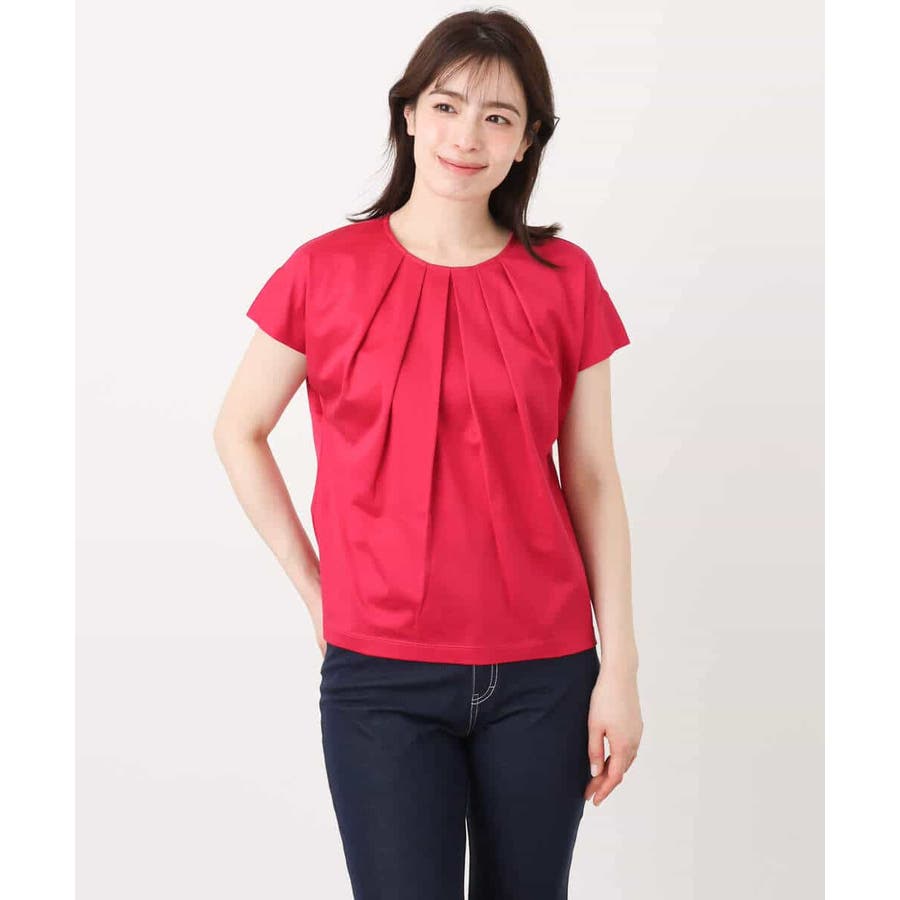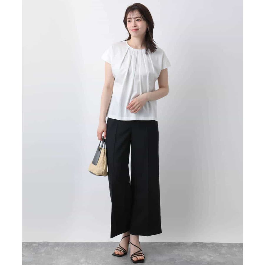 トレンド感のある肩タックのフレンチスリーブで二の腕部分をストレートにすっきりと見せてくれる袖口ラインが魅力的。衿ぐりのタックディティールが一枚でサマになるカットソーです。