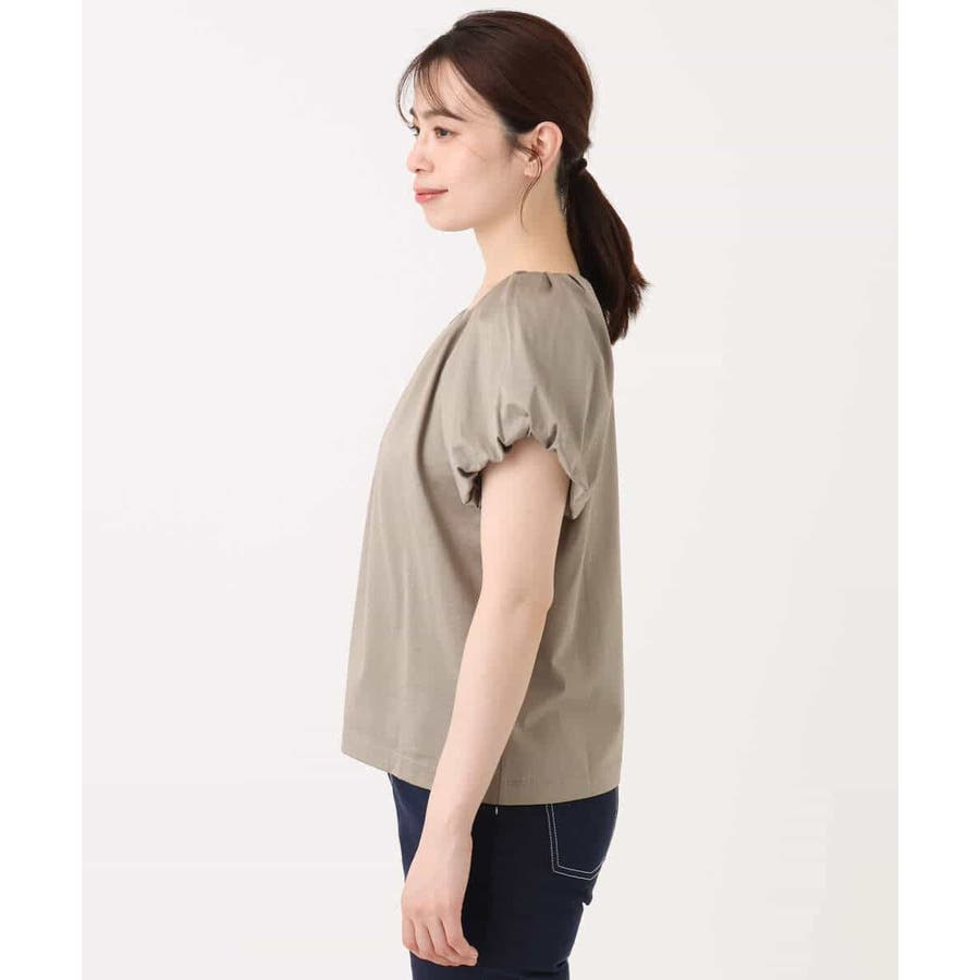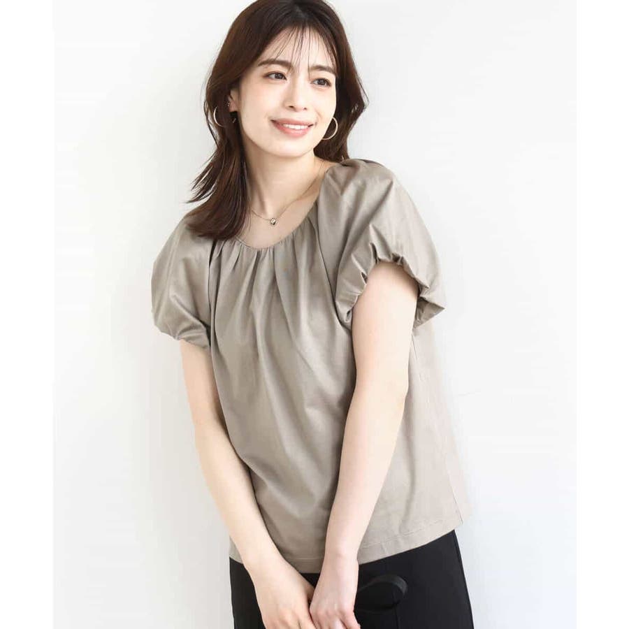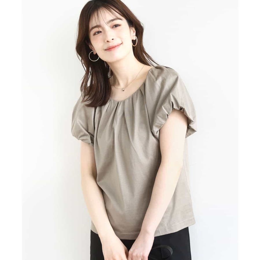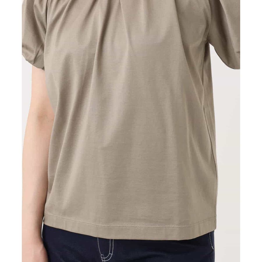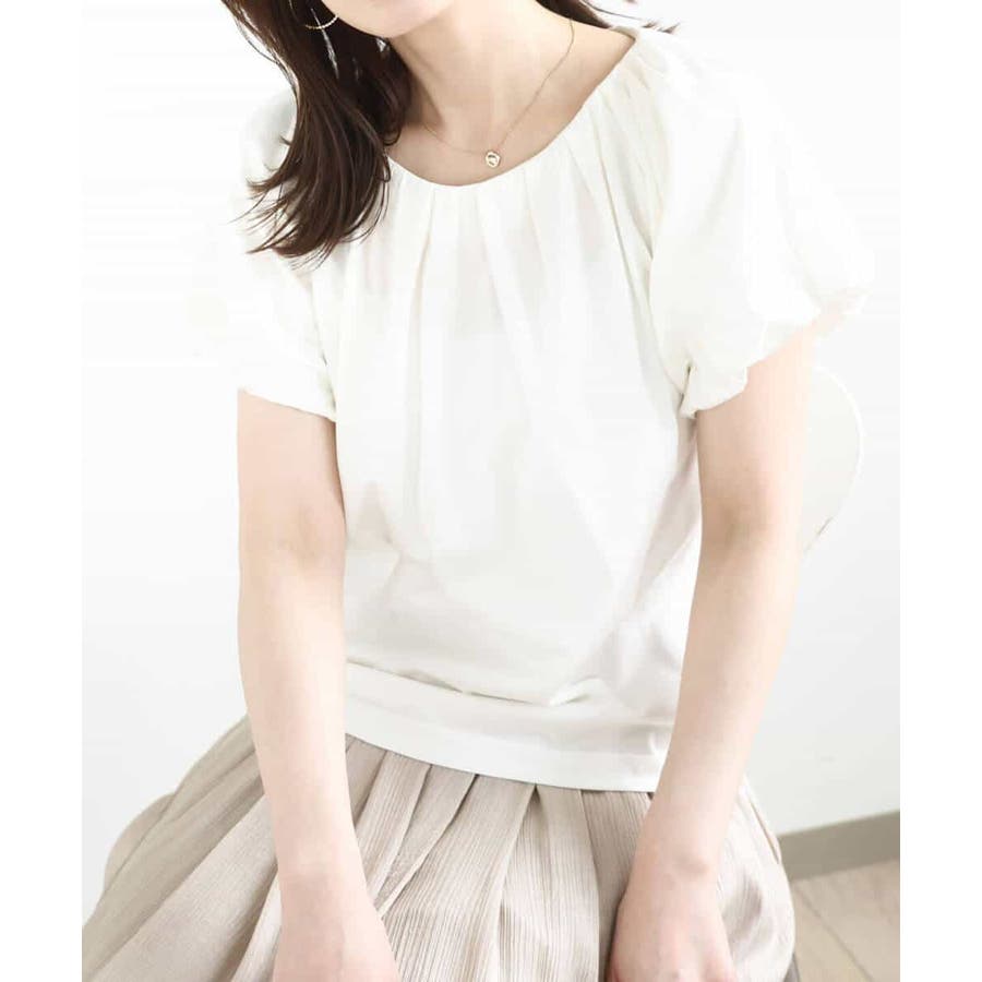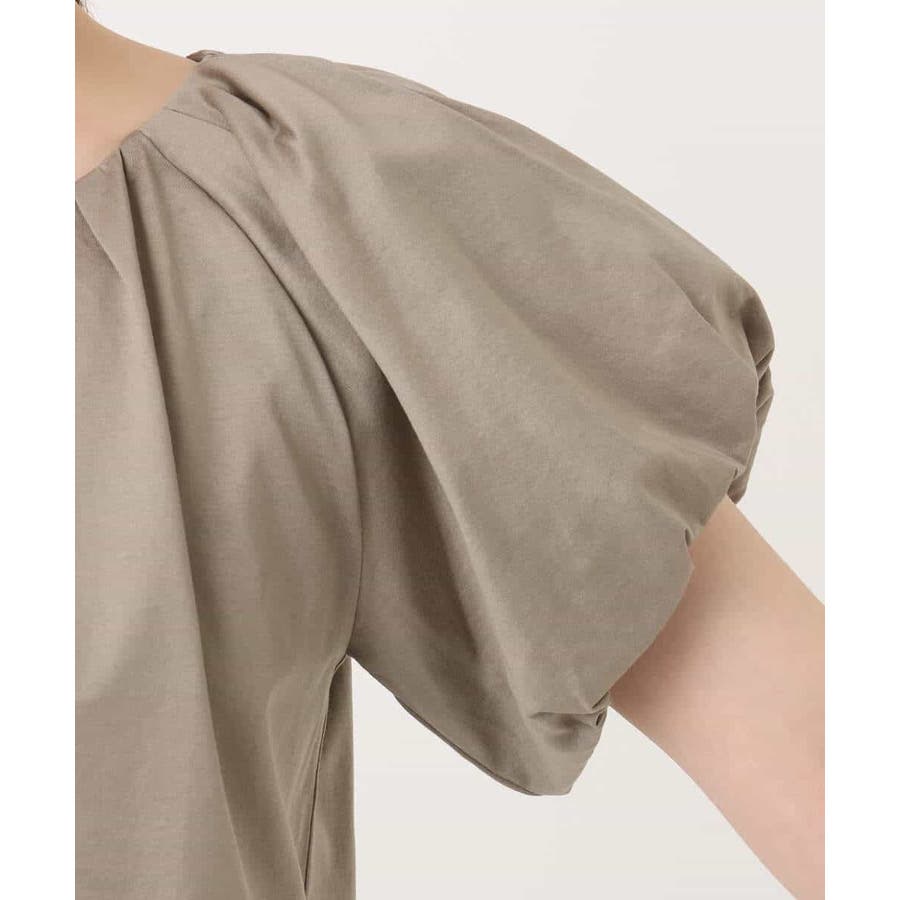 衿ぐりと袖口に細かなタック&ギャザーを入れ、丸みのあるシルエットが女性らしいカットソー。デコルテをきれいに見せてくれるやわらかなVネックラインで、袖口もバルーンスリーブが旬なデザインに。