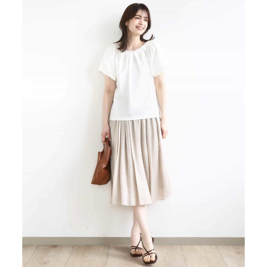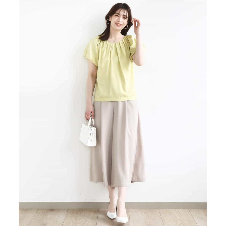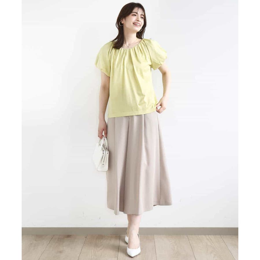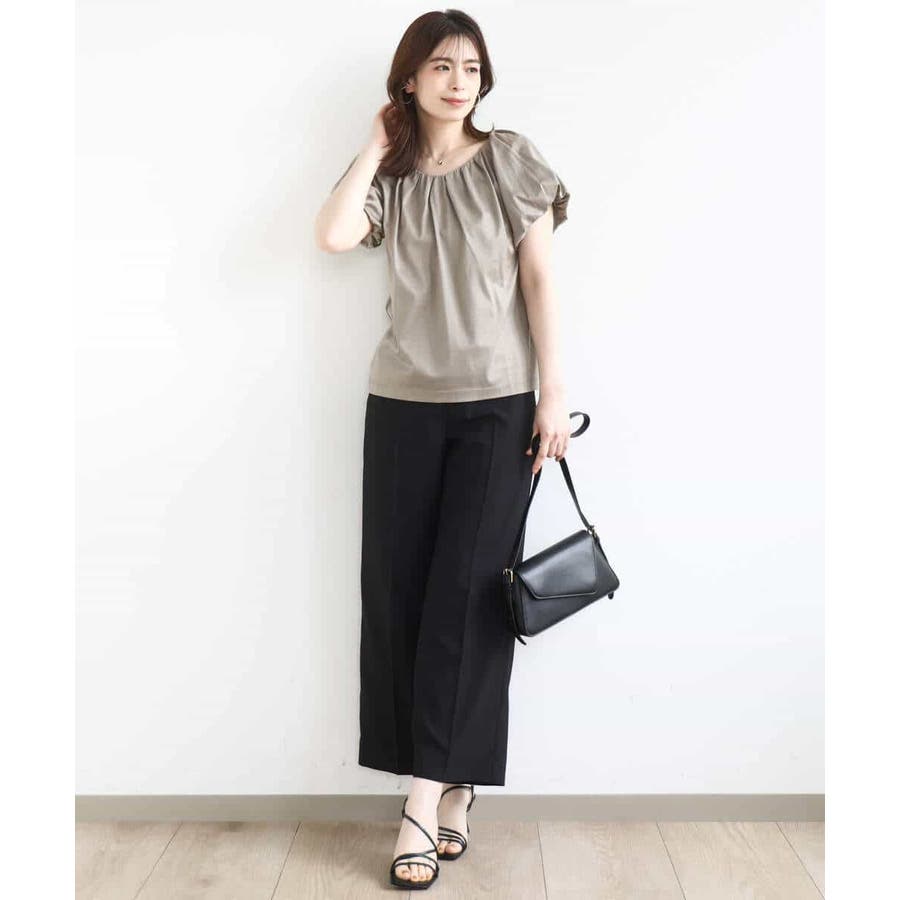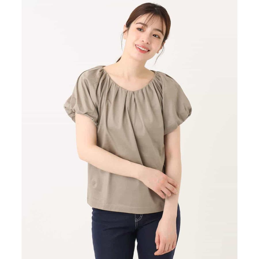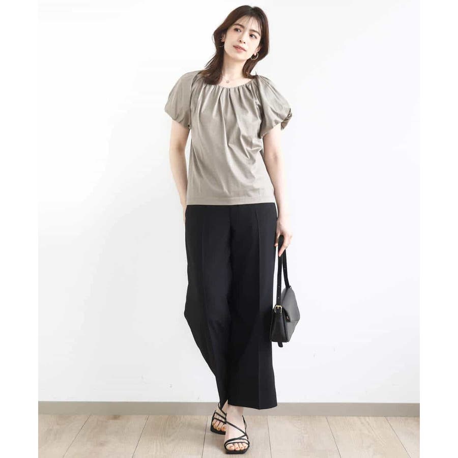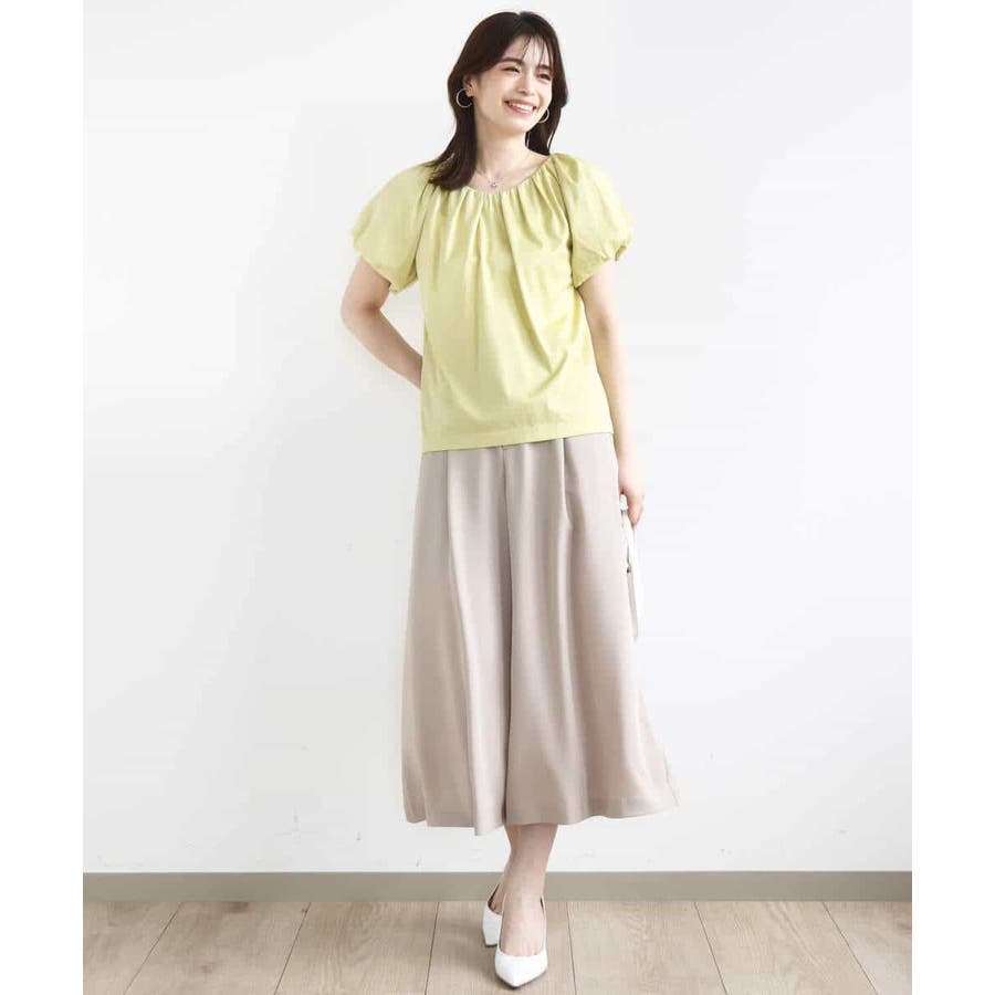 衿ぐりと袖口に細かなタック&ギャザーを入れ、丸みのあるシルエットが女性らしいカットソー。デコルテをきれいに見せてくれるやわらかなVネックラインで、袖口もバルーンスリーブが旬なデザインに。