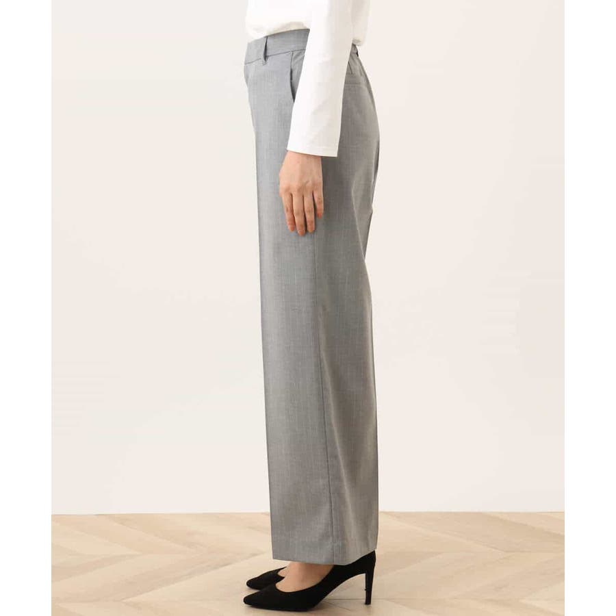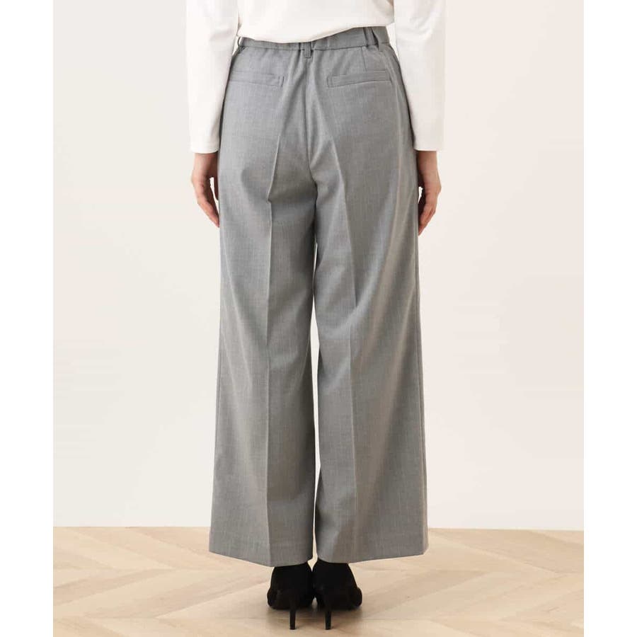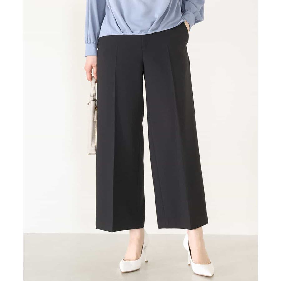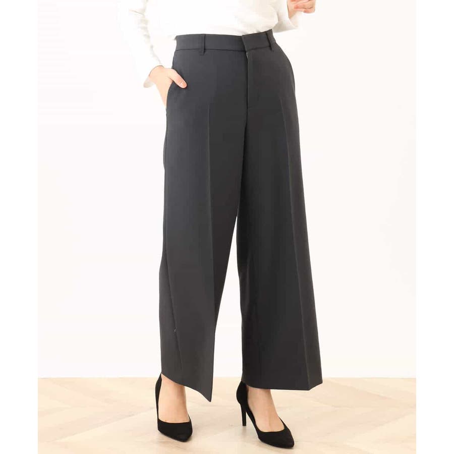 すっきりとしたシルエットがきれい見えのブランド定番人気のワイドパンツ。人が立った状態の脚の形状に近い特別なボディーを使用しパターンを起こしているため、ヒップのトップ位置が高くヒップアップ効果があり、ストンと真直ぐ落ちるワイドシルエットが気になる太もも周りをカバーし、脚をまっすぐ長く見せてくれます。フロントのホックは可動式で1.5cm動き、後ろのウエストゴム仕様と合わせてストレスフリーな履き心地を実現。