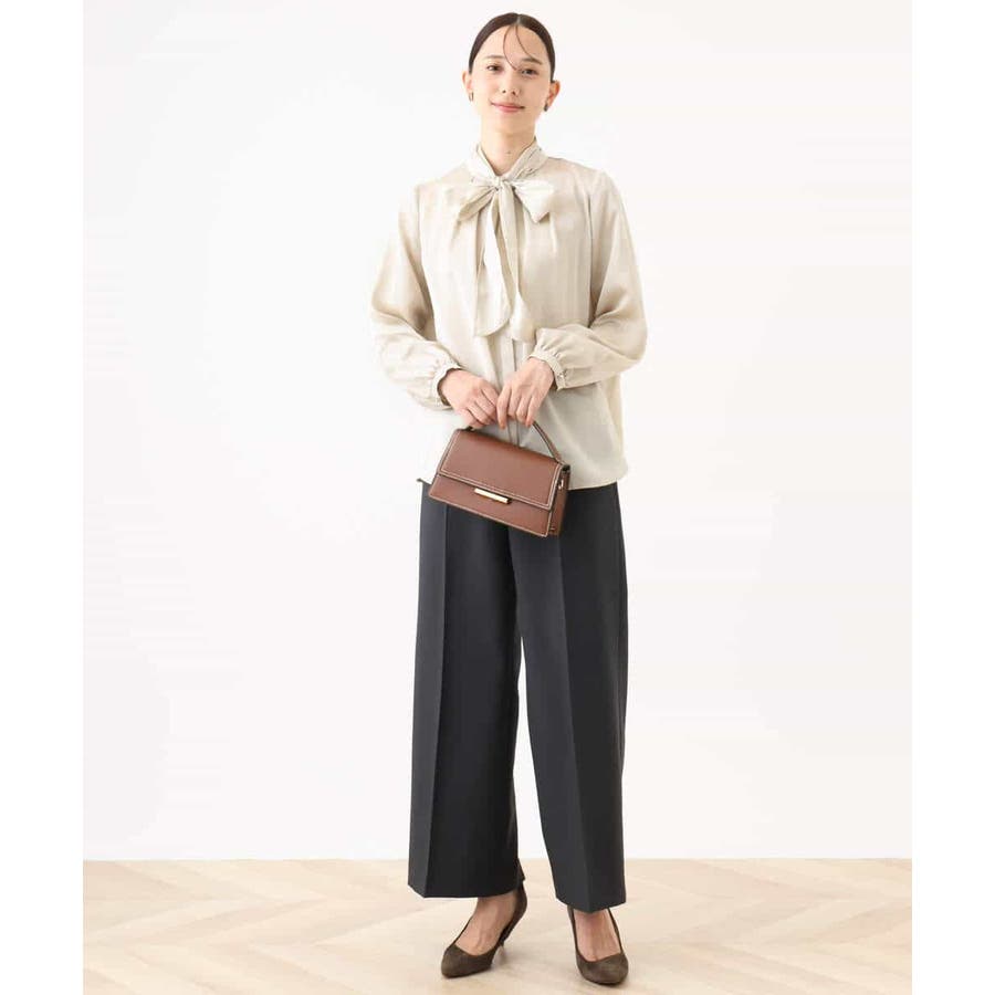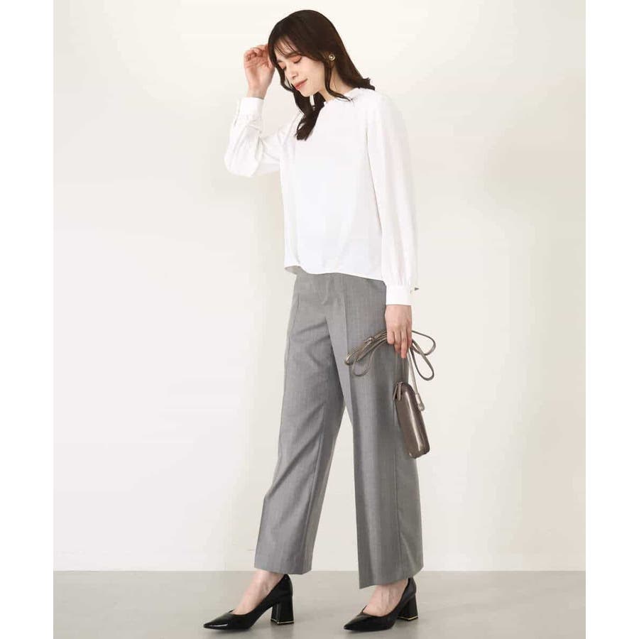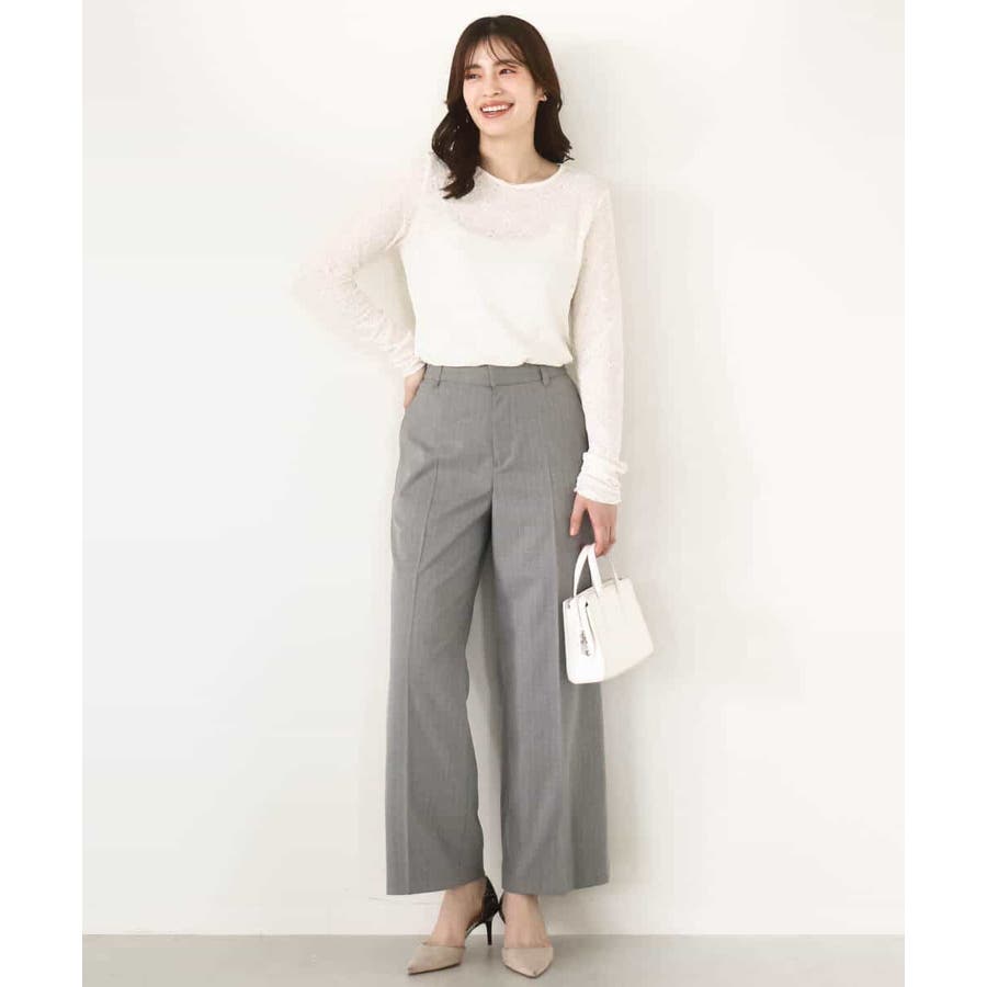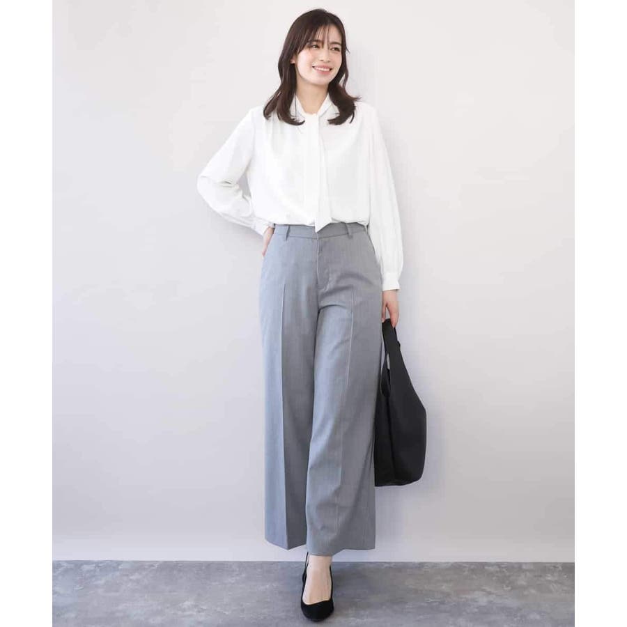 すっきりとしたシルエットがきれい見えのブランド定番人気のワイドパンツ。人が立った状態の脚の形状に近い特別なボディーを使用しパターンを起こしているため、ヒップのトップ位置が高くヒップアップ効果があり、ストンと真直ぐ落ちるワイドシルエットが気になる太もも周りをカバーし、脚をまっすぐ長く見せてくれます。フロントのホックは可動式で1.5cm動き、後ろのウエストゴム仕様と合わせてストレスフリーな履き心地を実現。