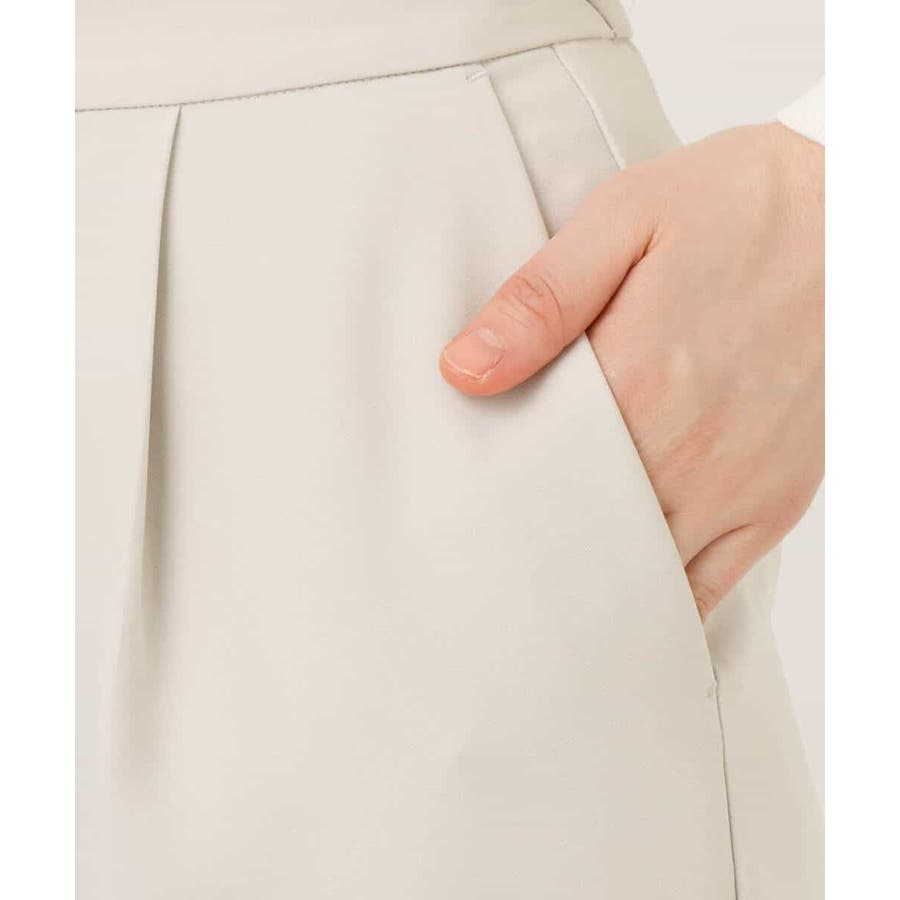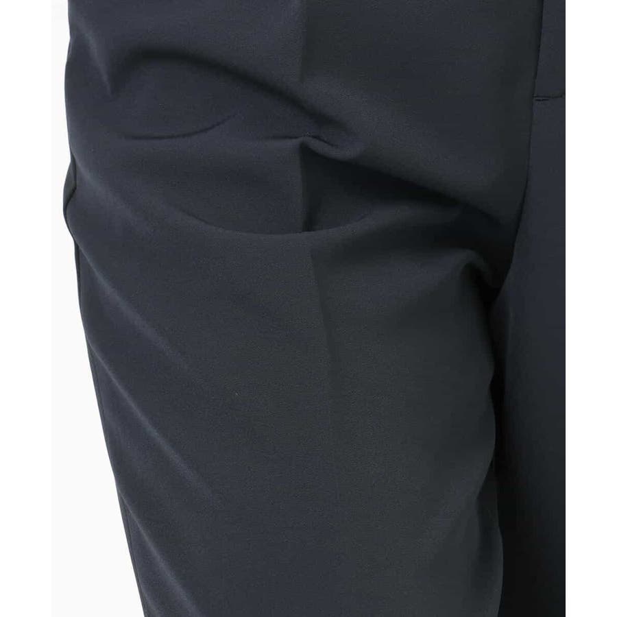 シワになりにくくお手入れもラクなきれい見え素材を使用。なめらかな表面感と程よい光沢感が魅力の素材はシーズン関係なく着用しやすい素材感です。動きやすいストレッチ感とお仕事にも嬉しい防シワ機能付き。
