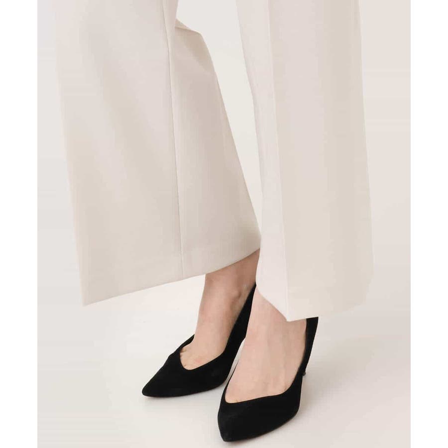 すっきりとしたシルエットがきれい見えのブランド定番人気のワイドパンツ。人間が立った状態の脚の形状に近い特別なボディーを使用しパターンを起こしているため、ヒップのトップ位置が高くヒップアップ効果があり、ストンと真直ぐ落ちるワイドシルエットが気になる太もも周りをカバーし、脚をまっすぐ長く見せてくれます。フロントのホックは可動式で1.5cm動き、後ろのウエストゴム仕様と合わせてストレスフリーな履き心地を実現。