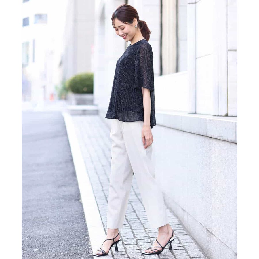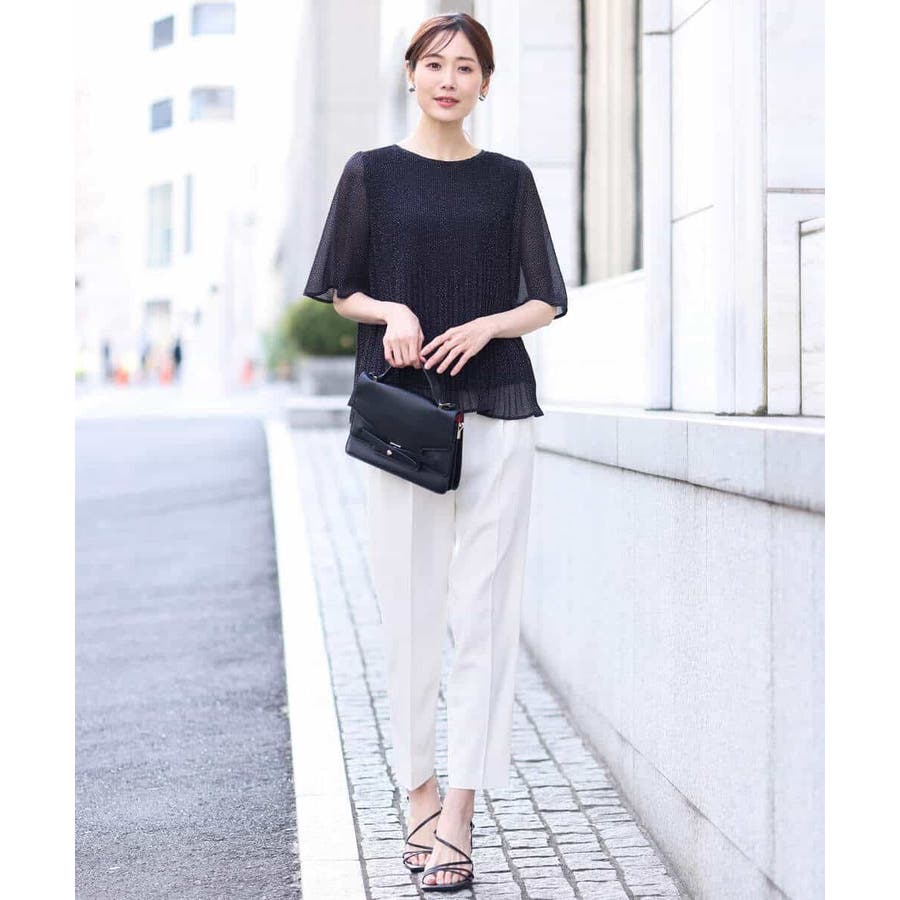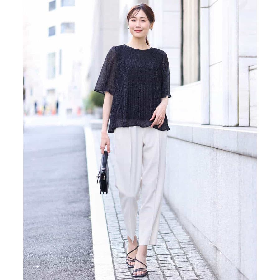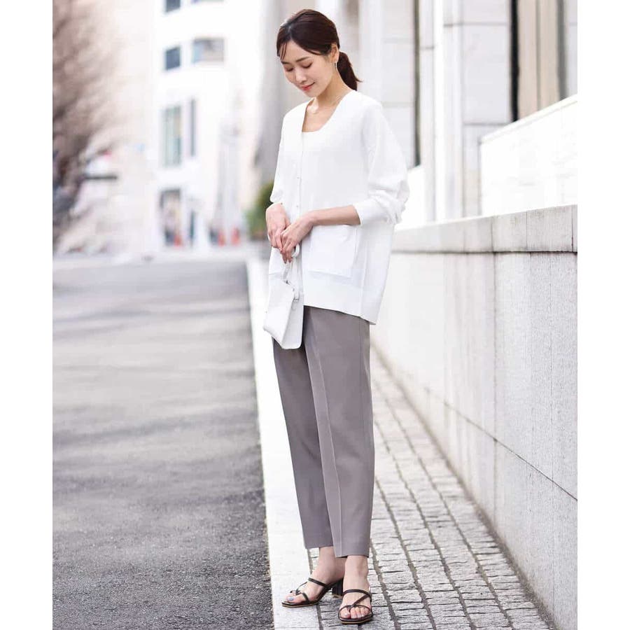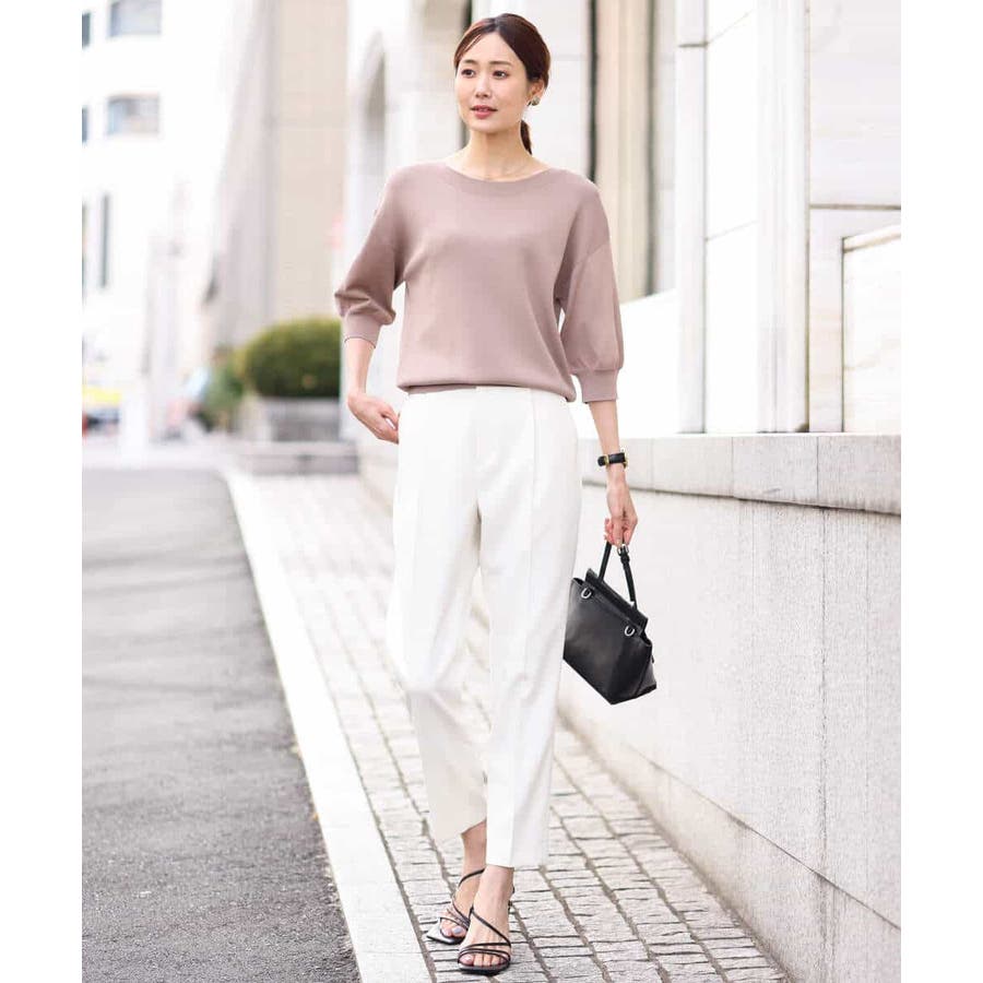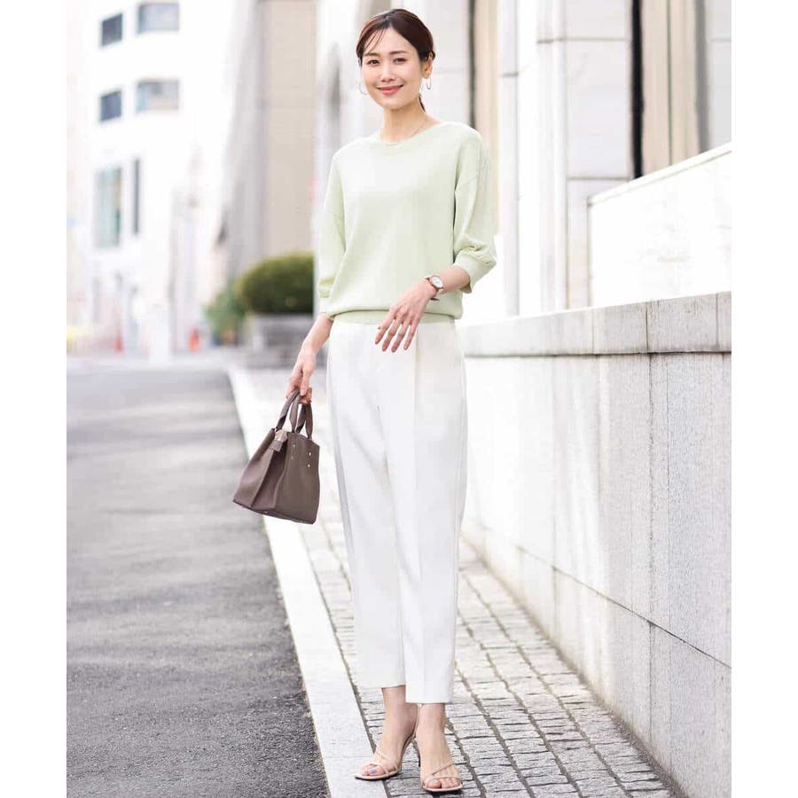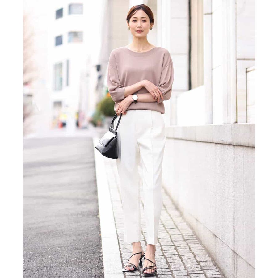 ラクなのにカジュアルすぎない見え感のパンツはお仕事に大活躍の予感。シワ感も気になりにくいので、出張やご旅行など、長時間の移動などにもおすすめです。