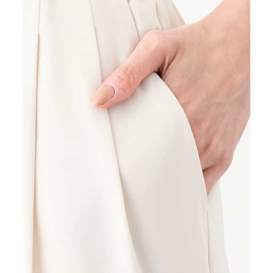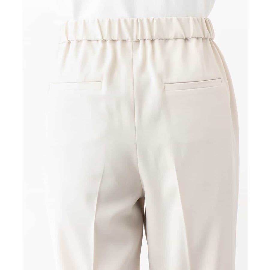 程良い光沢のある落ち感素材はストレッチが効いており着心地の良さが魅力。ウエストも後ろがゴム仕様となり、ストレスフリーな着心地です。春夏秋にこなしやすいさらりとした素材です。
