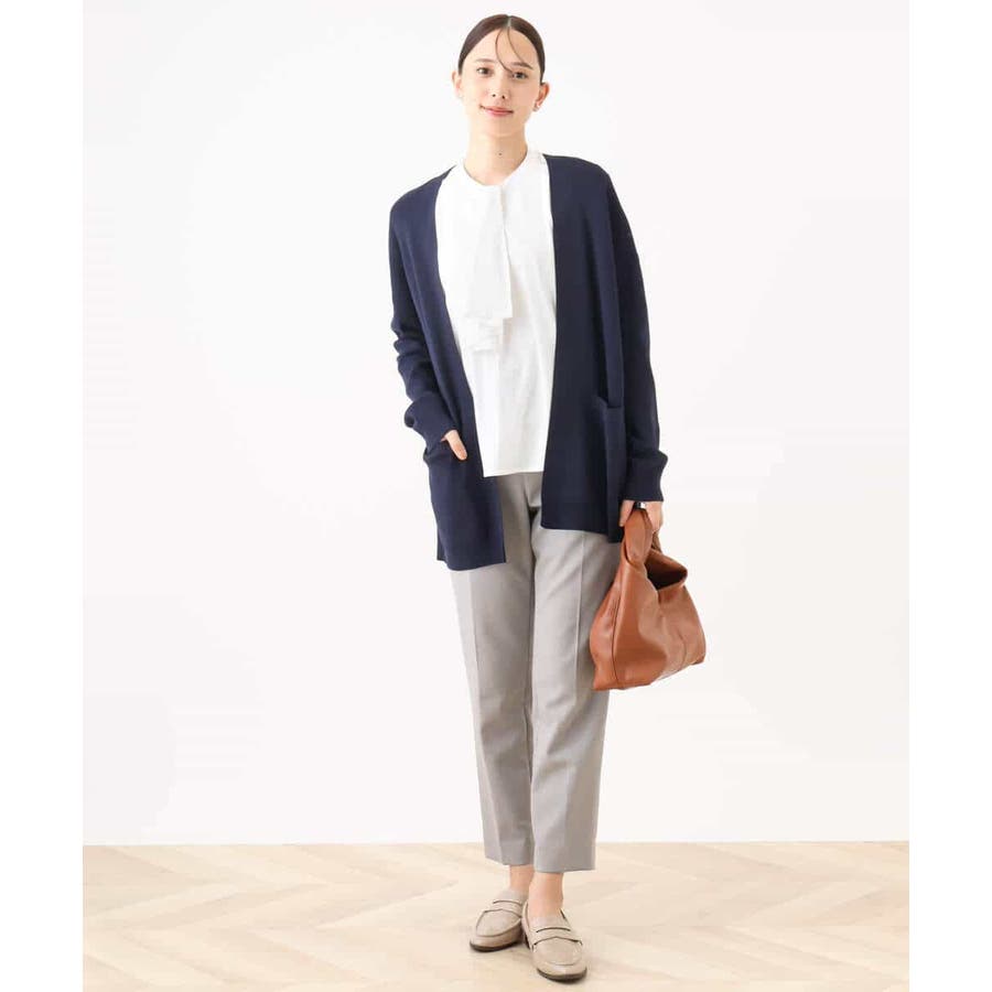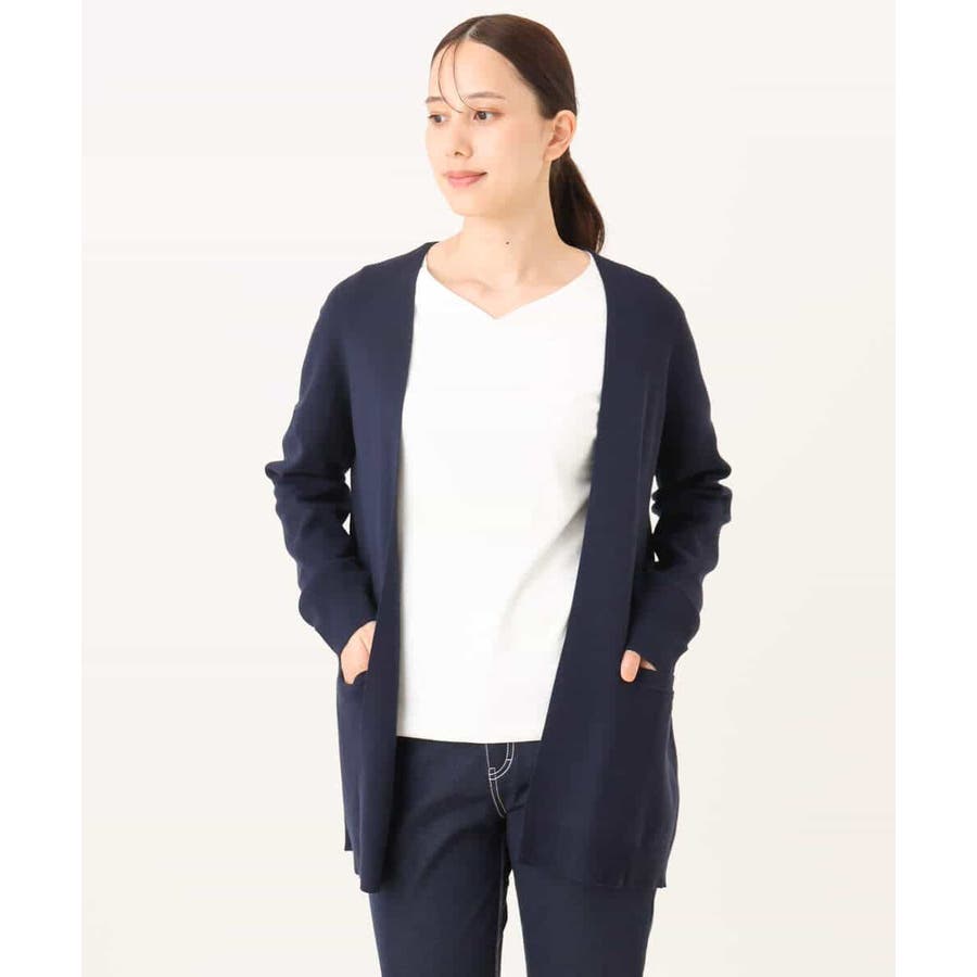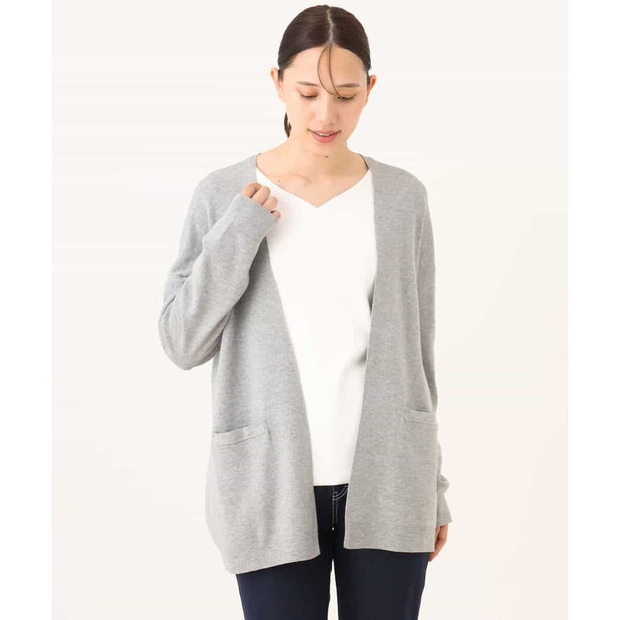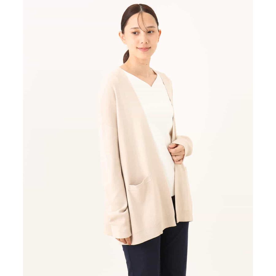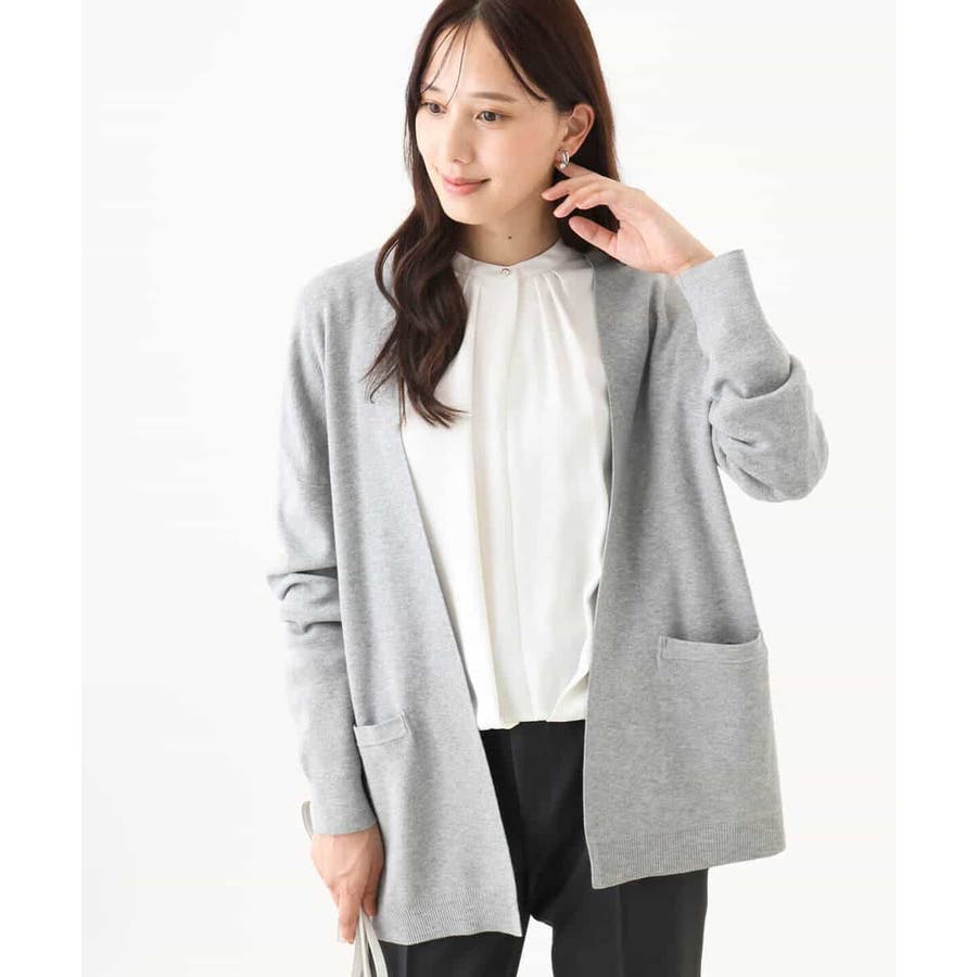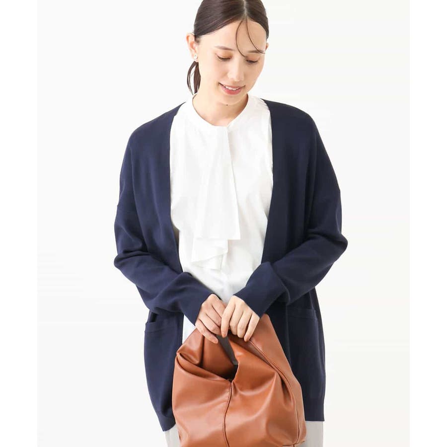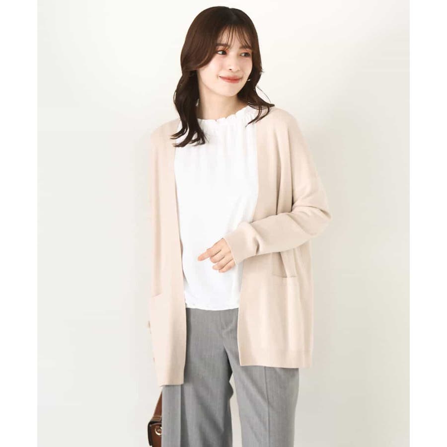 季節の変わり目に便利なカーディガン。釦レスでさらっと羽織れて、しっかりした印象に仕上がる一枚です。
