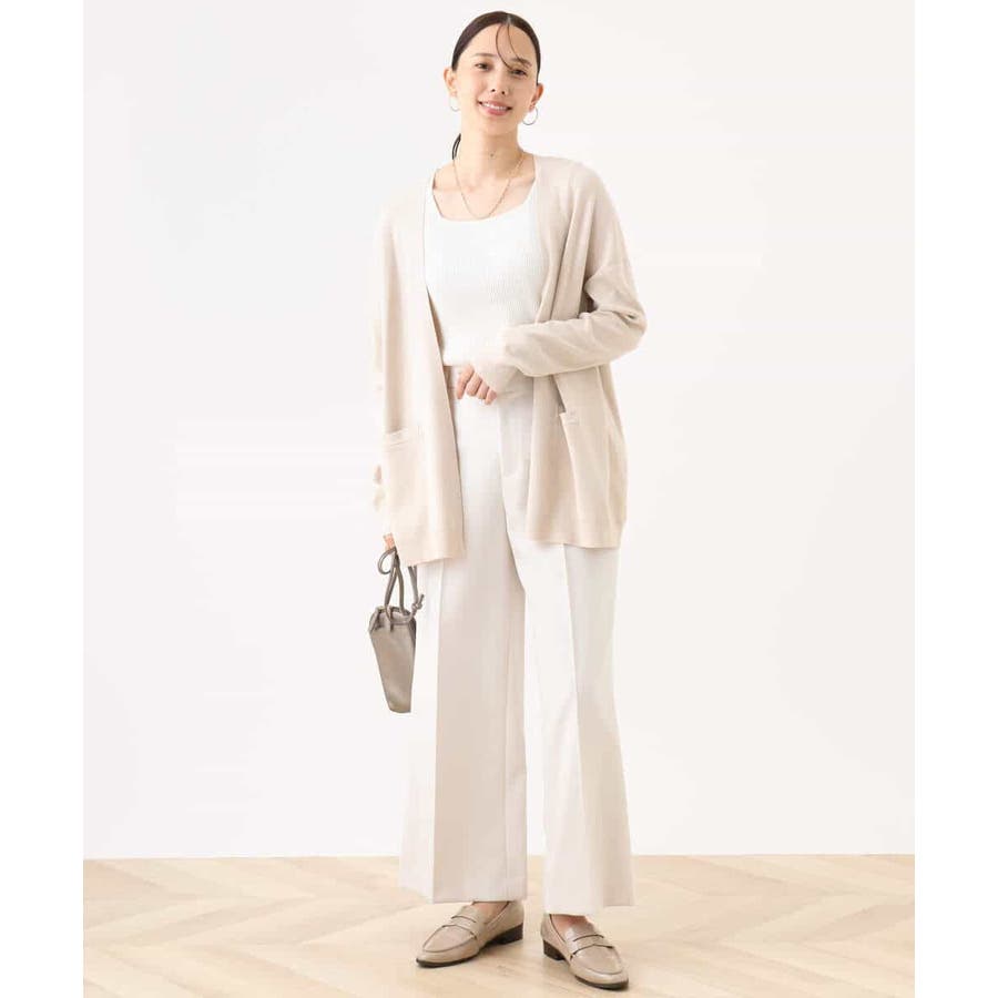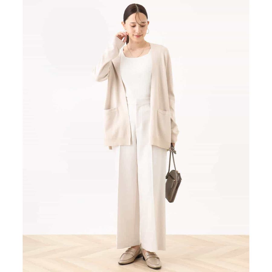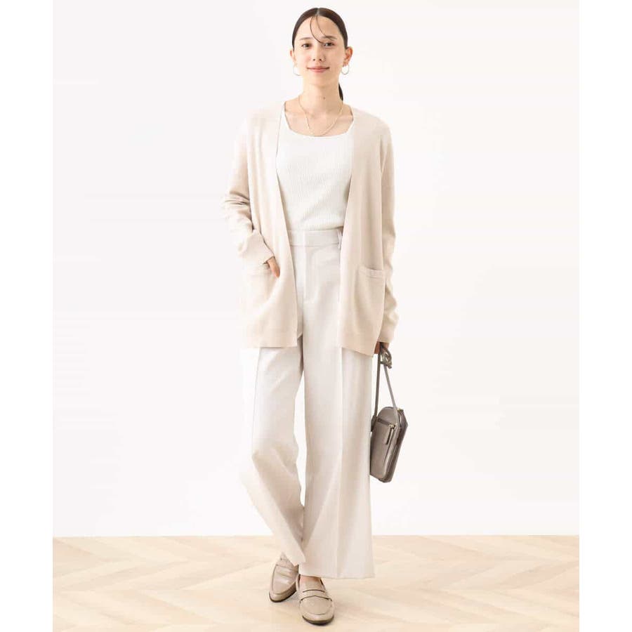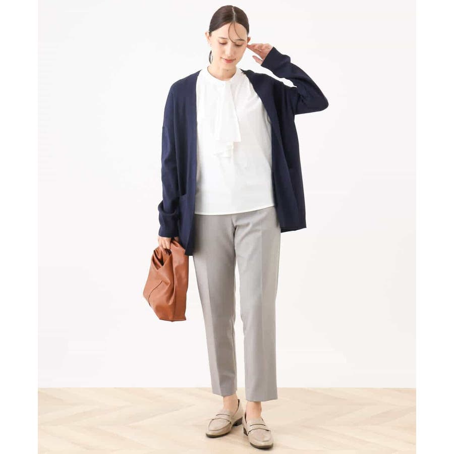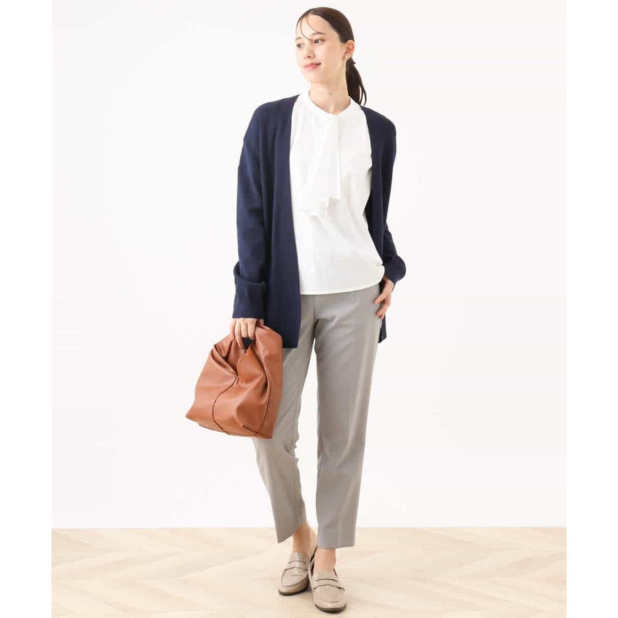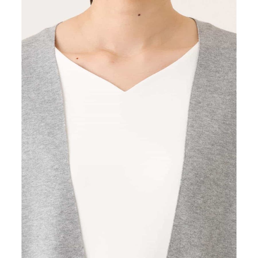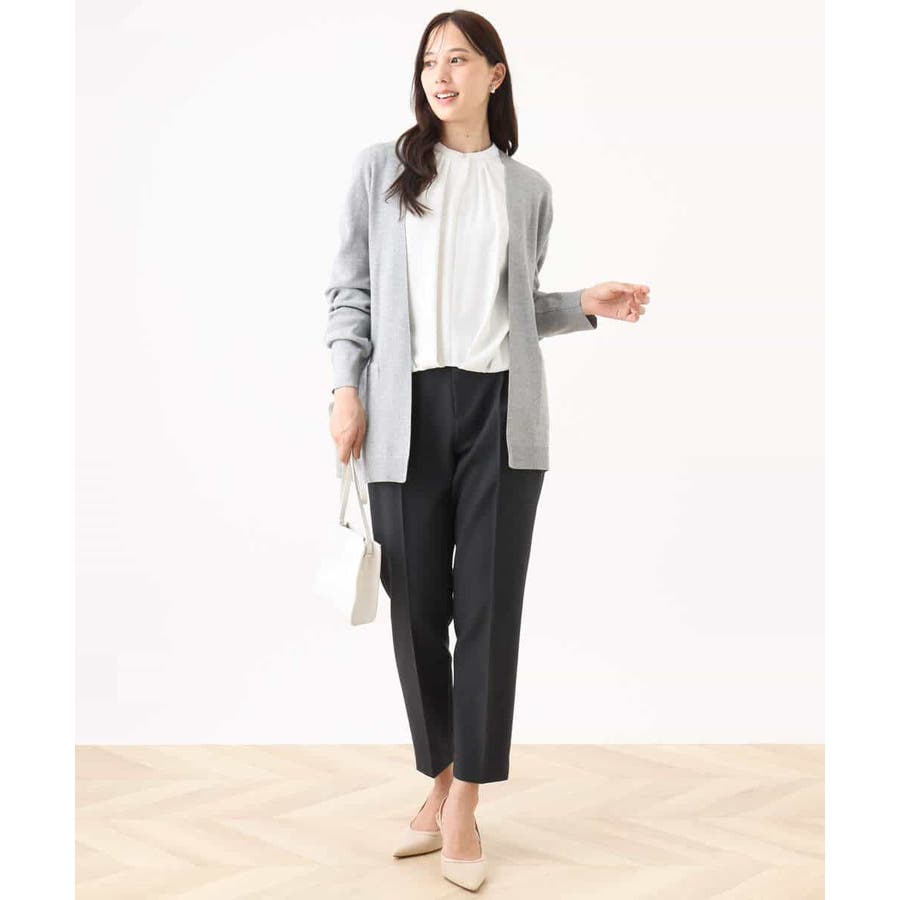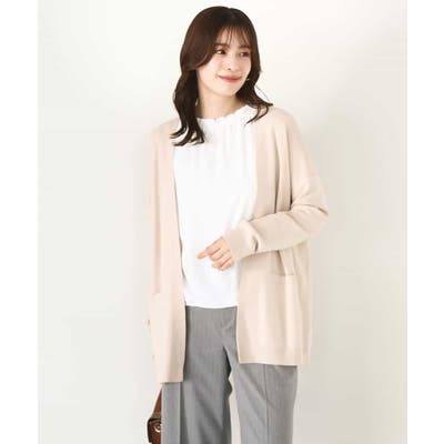 季節の変わり目に便利なカーディガン。釦レスでさらっと羽織れて、しっかりした印象に仕上がる一枚です。