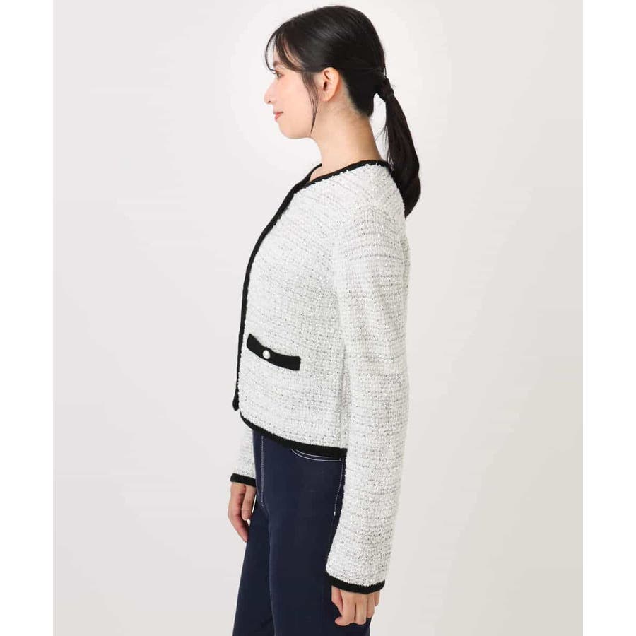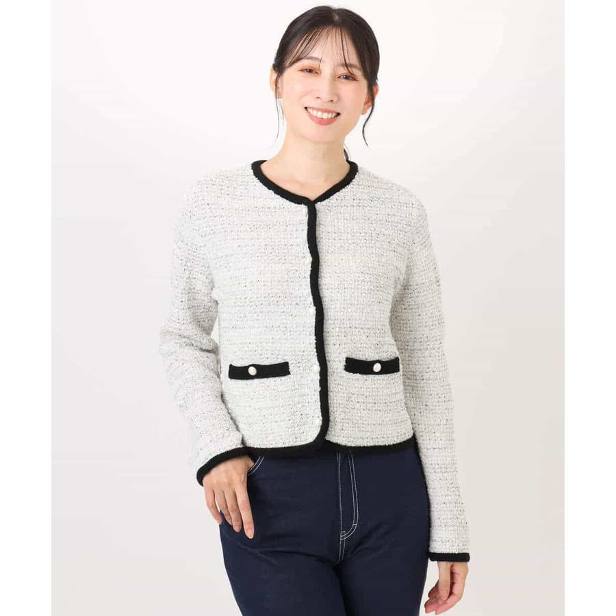 ラメ入りツイードニットジャケット/洗える/WEB限定サイズあり