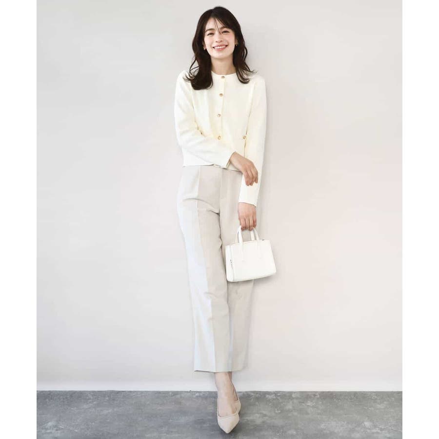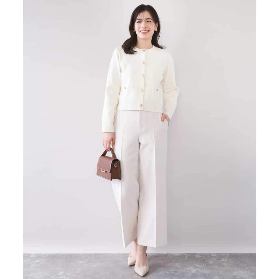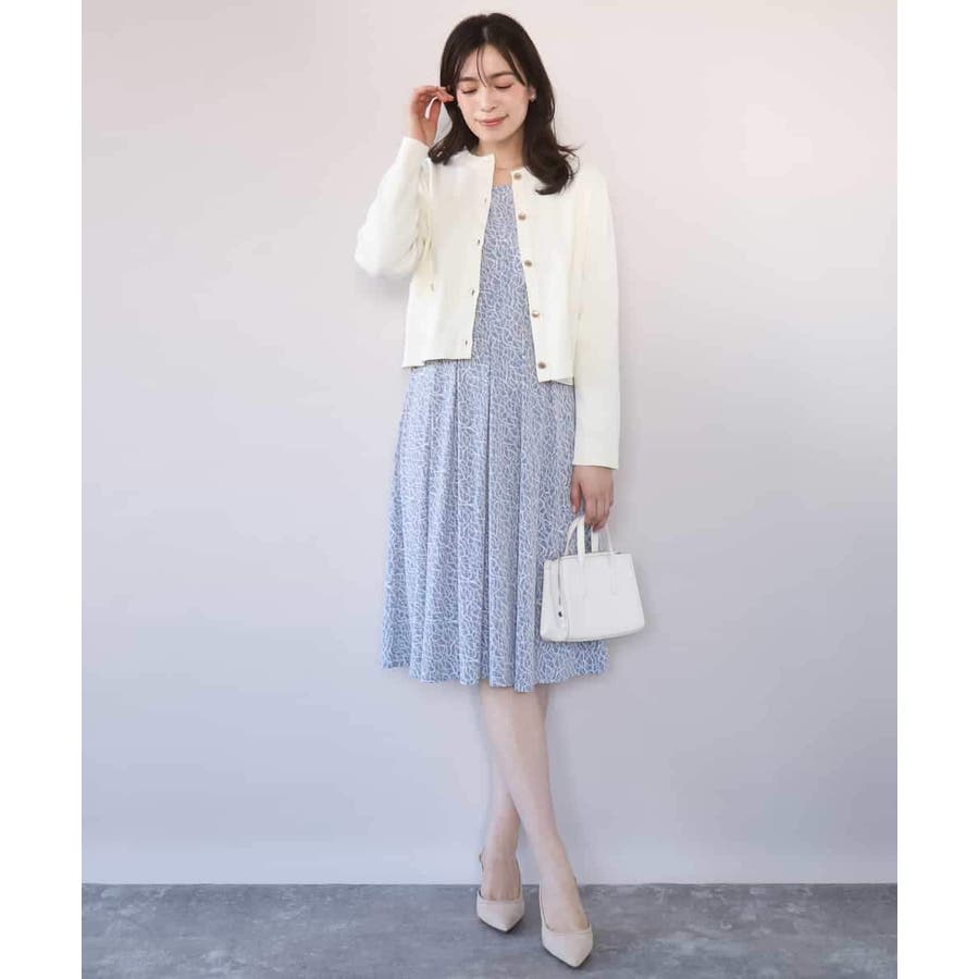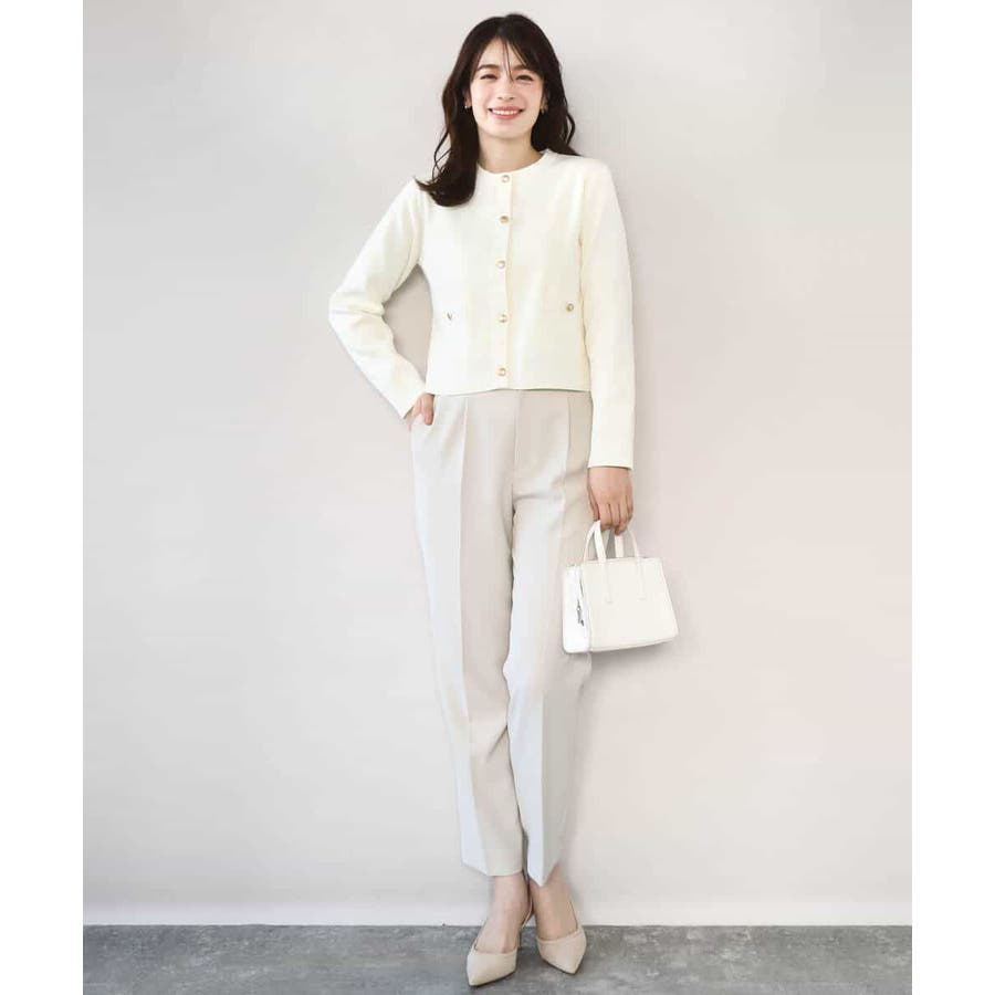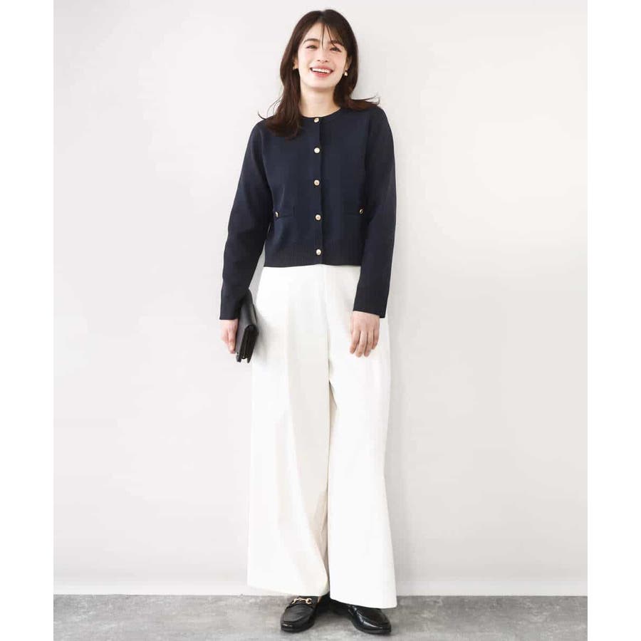 短めの着丈のカーディガンはプルオーバーとしても、ジャケット感覚で羽織っても着回せる優秀アイテム。ニット素材ながら上品な印象なので、セレモニーなどのONシーンから普段使いまで幅広く着回せるデザインです。