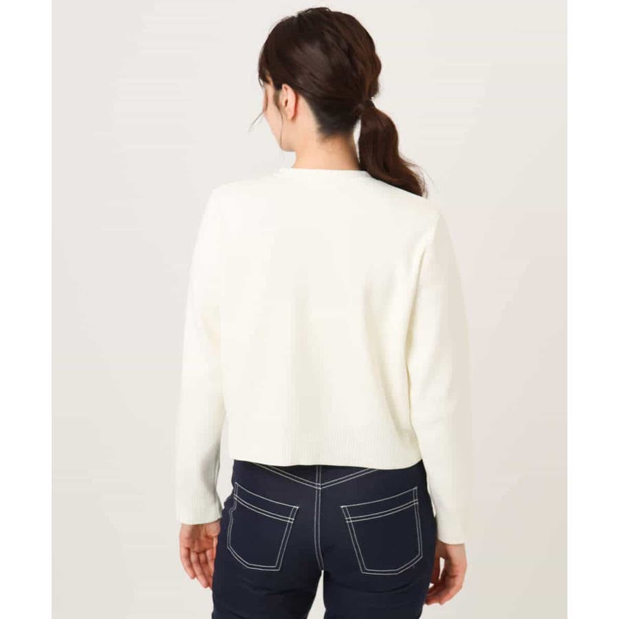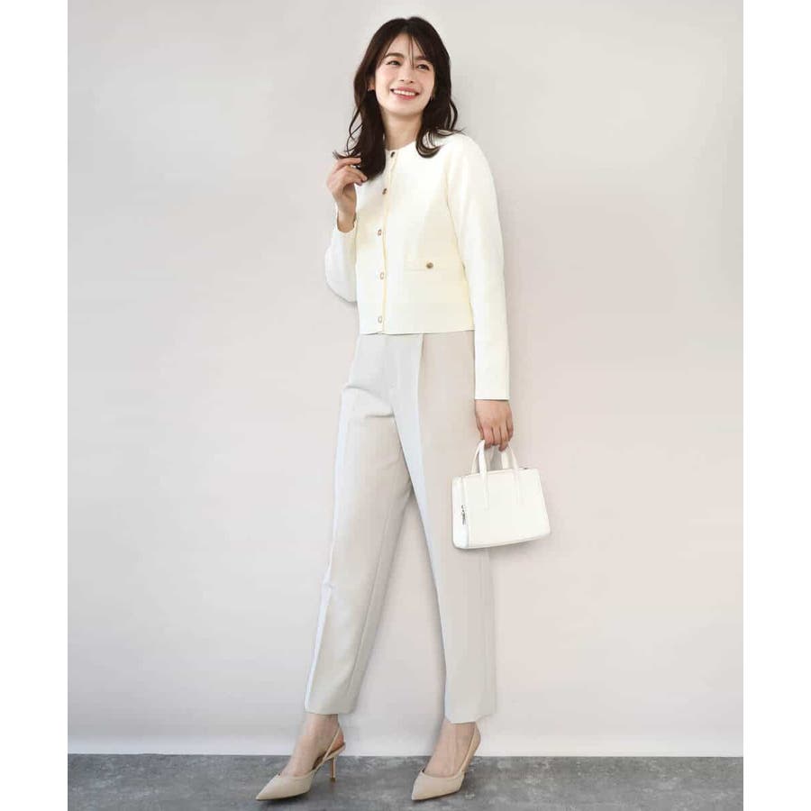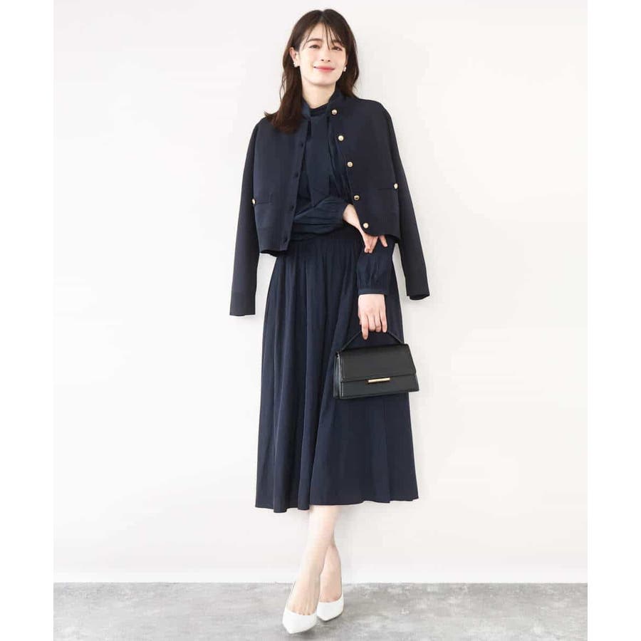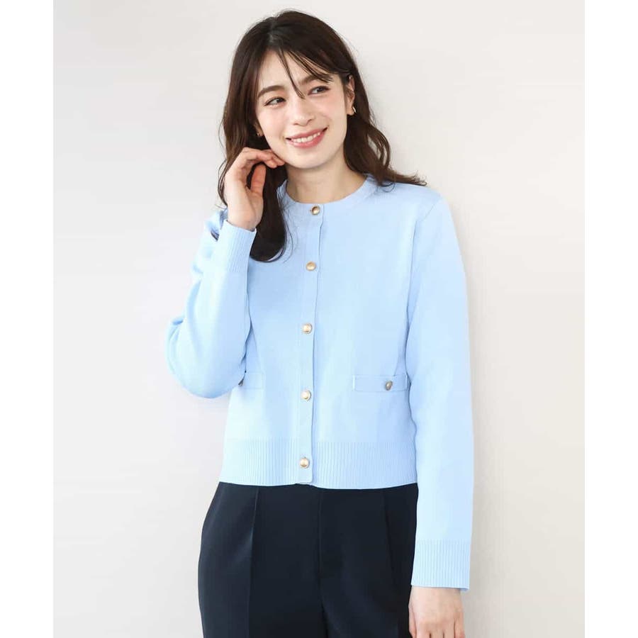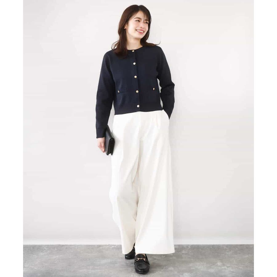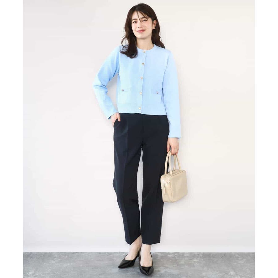 短めの着丈のカーディガンはプルオーバーとしても、ジャケット感覚で羽織っても着回せる優秀アイテム。ニット素材ながら上品な印象なので、セレモニーなどのONシーンから普段使いまで幅広く着回せるデザインです。