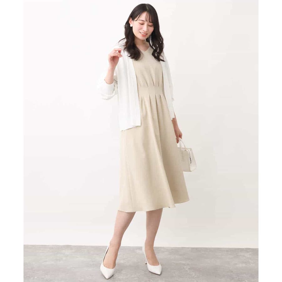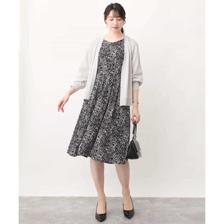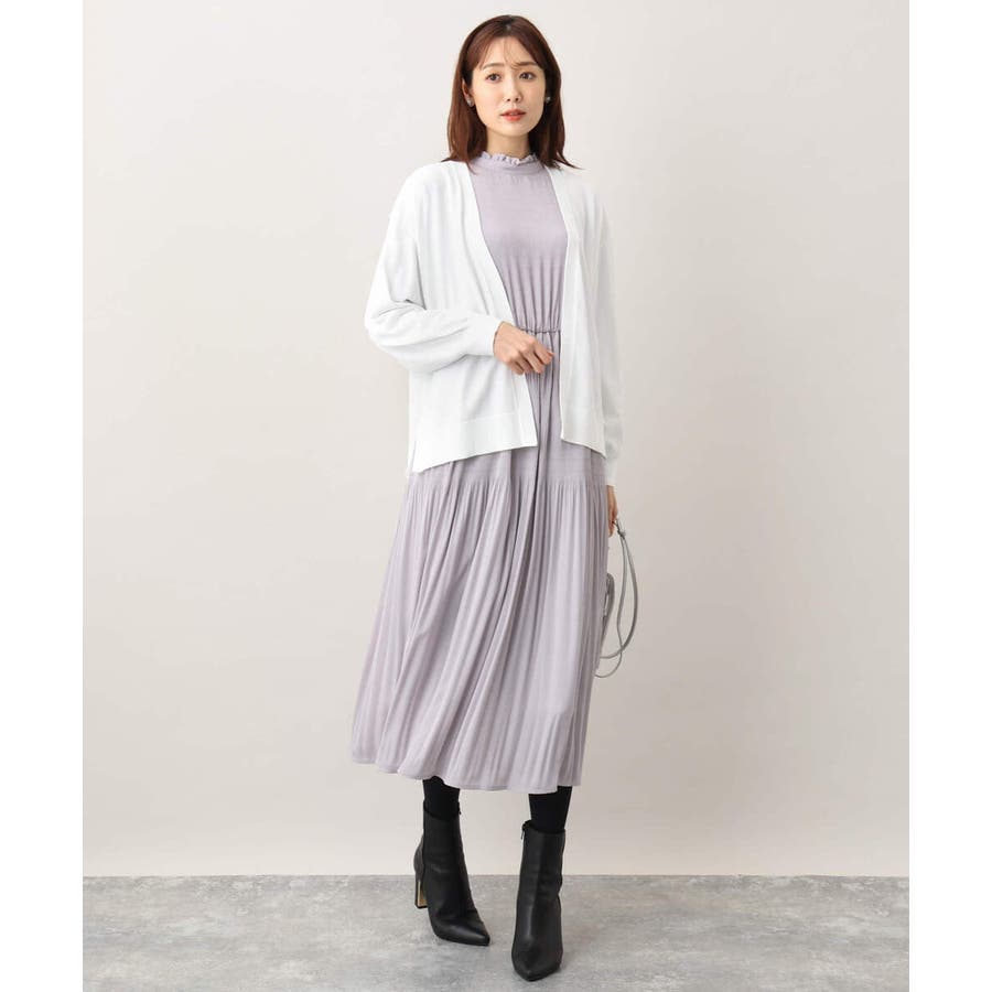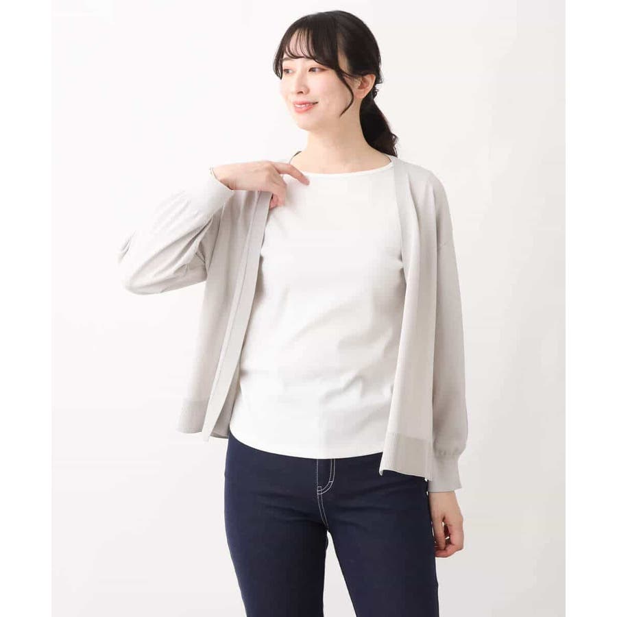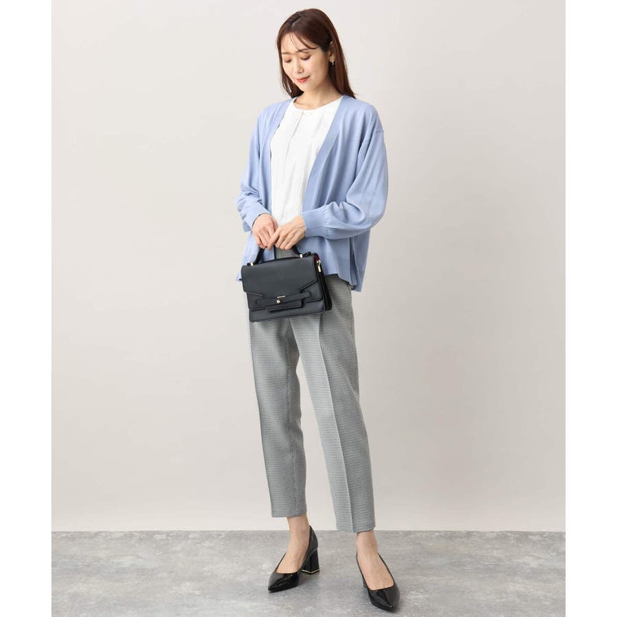コクーンスリーブの着流しカーディガン。袖はタックアップしてボリュームを出し、こなれた印象で着こなすのがおすすめです。