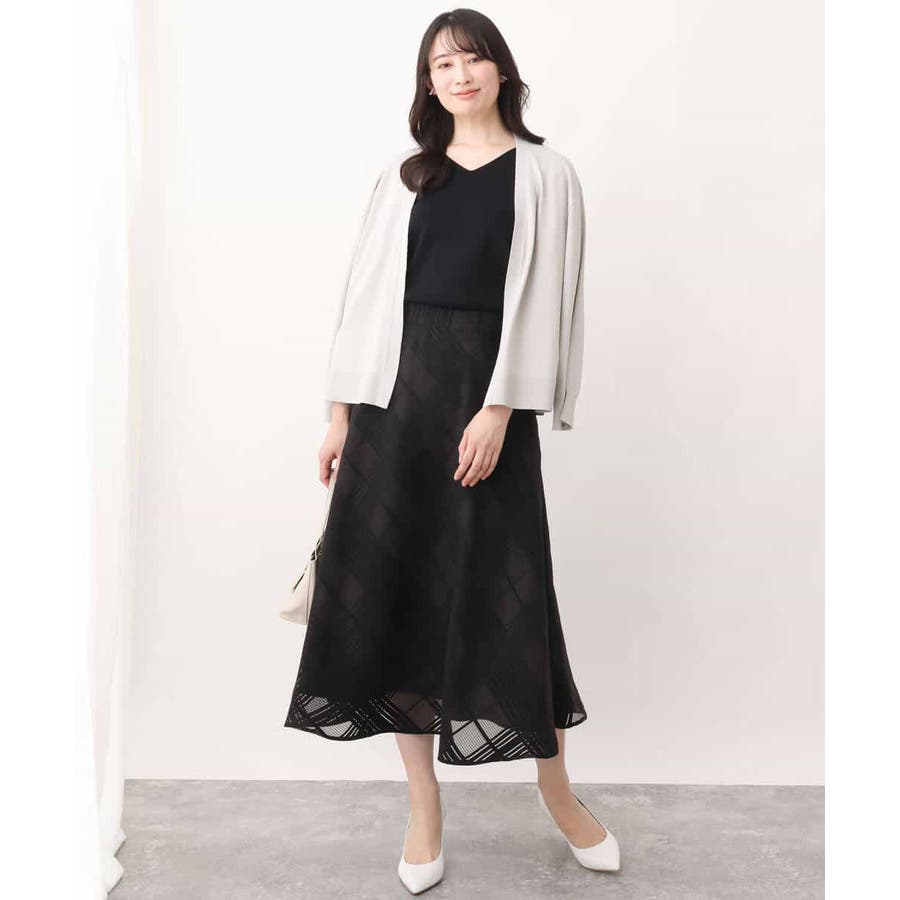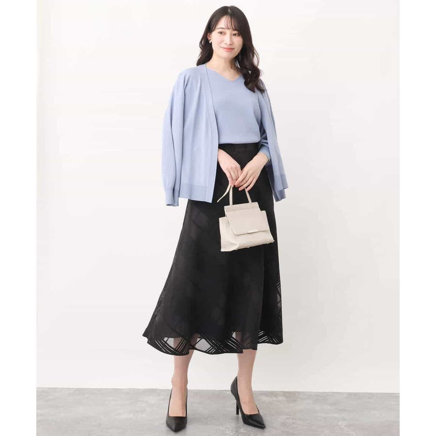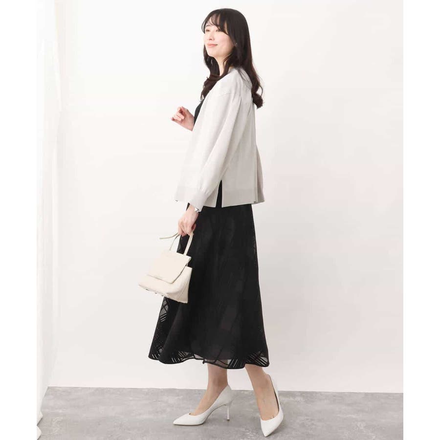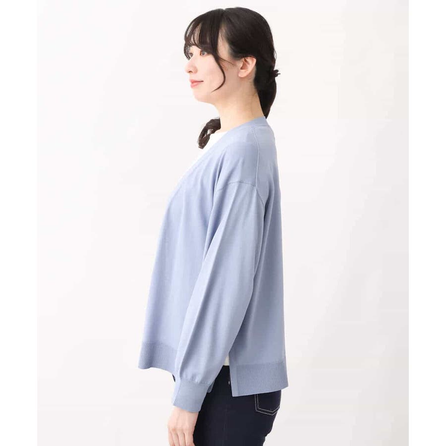 腰にかかる程度の短めの着丈はワンピースやスカートと好相性。バランス良く着こなせます。同素材のVネックニットとセットでアンサンブルとしての着用もおすすめです。