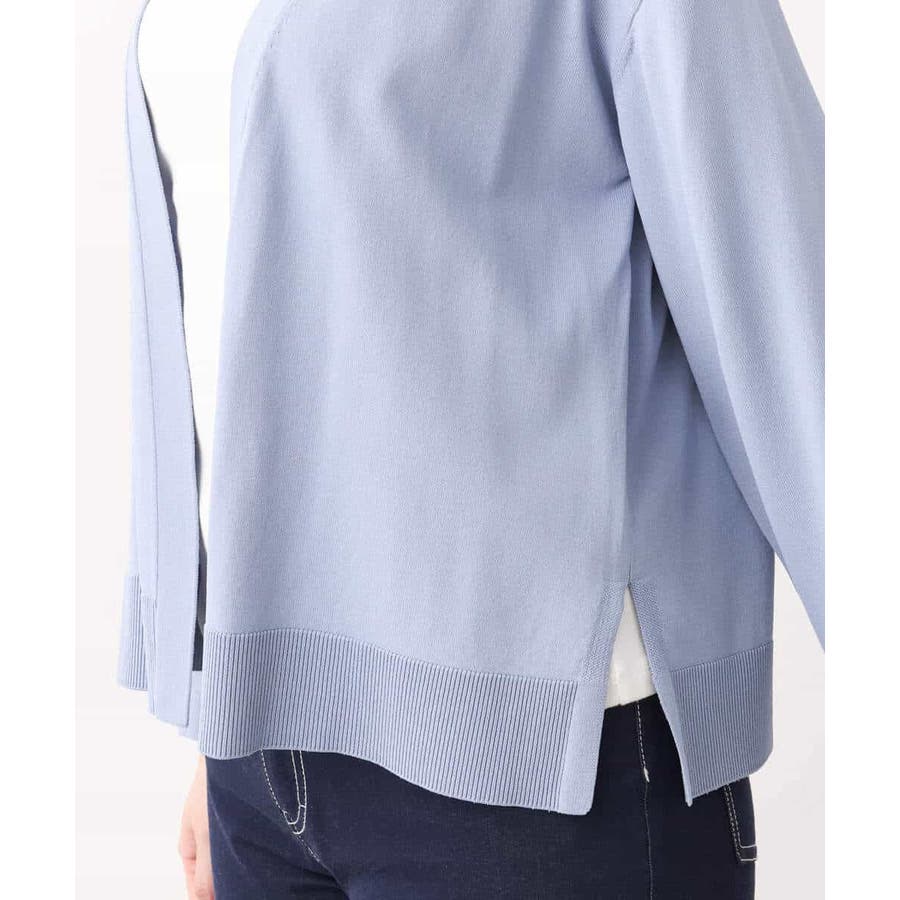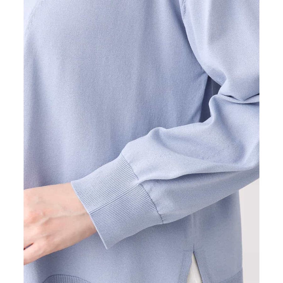 やや薄手のニットで軽い着心地です。 釦がなくシンプルなデザインなのでどんなコーディネートも相性良くまとまります。