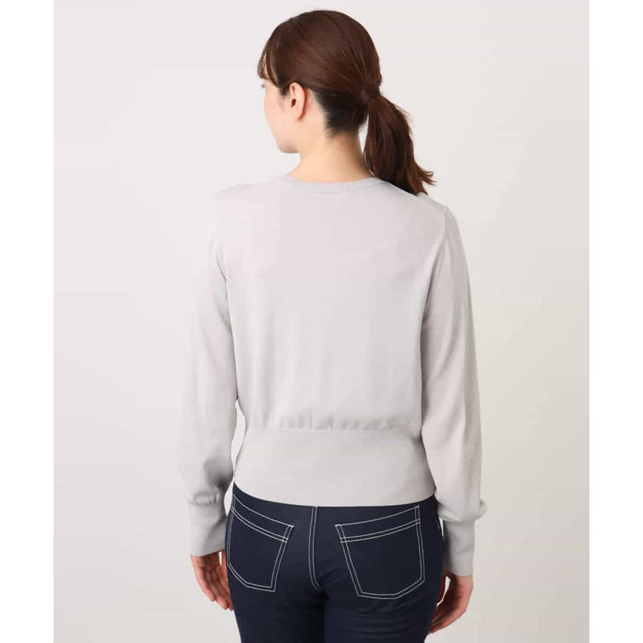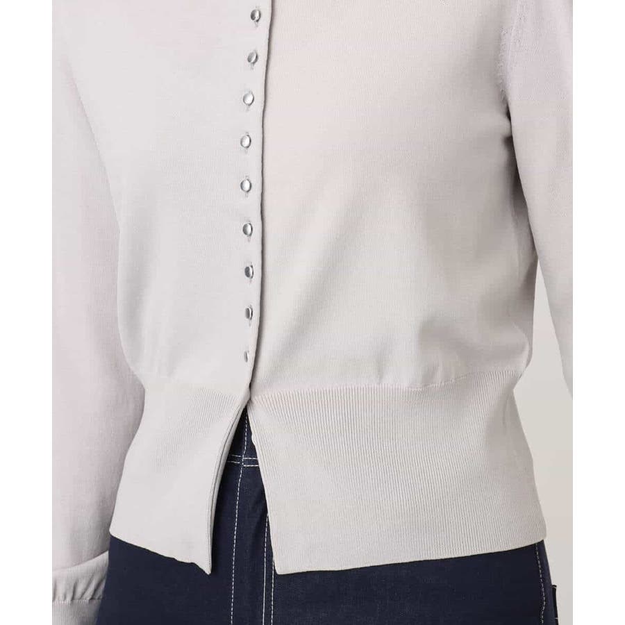 前立てに並んだ小さなメタル釦がポイントの長袖ニットカーディガン。広幅の裾リブは釦レスでスリットのように着こなしていただければ、簡単にこなれた雰囲気の完成。