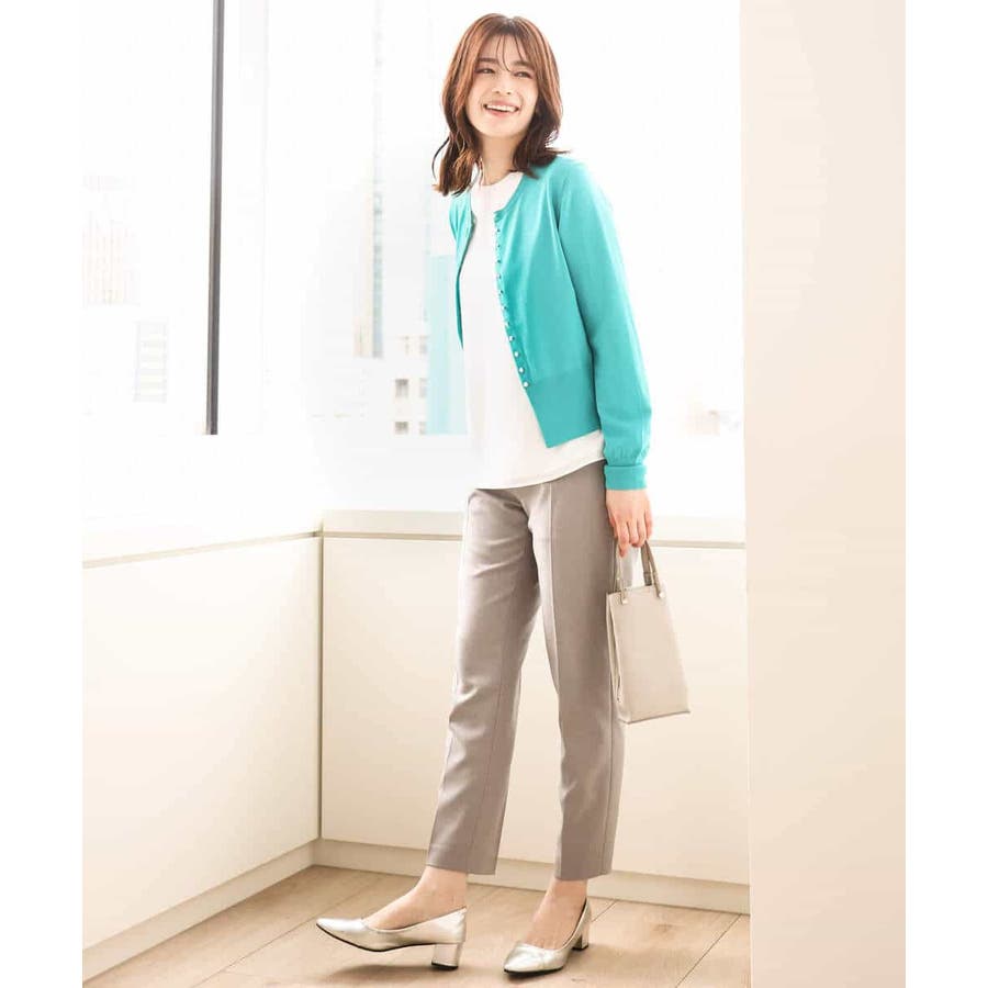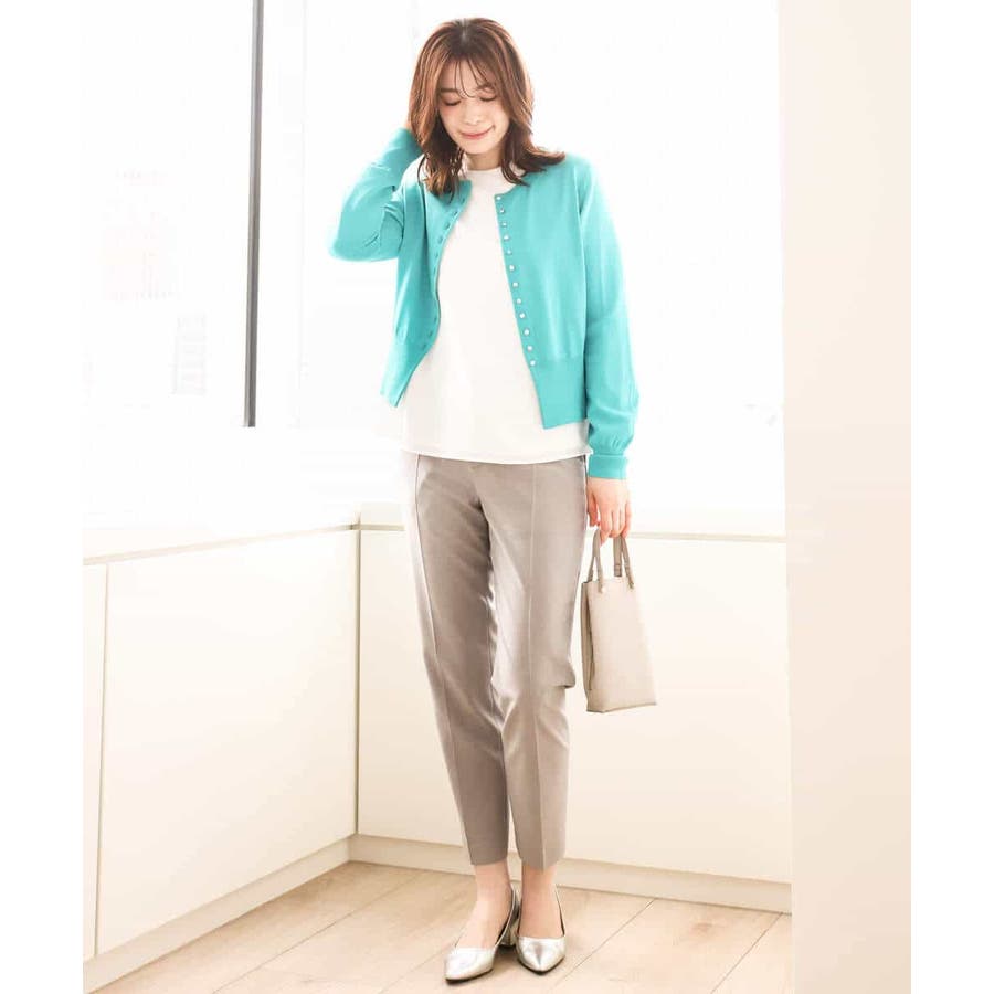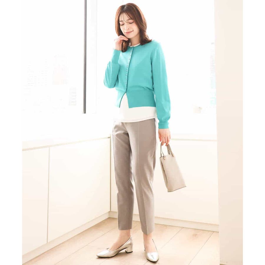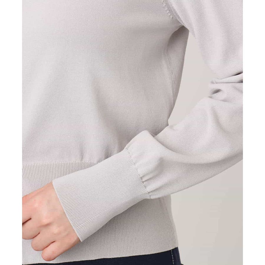 ハイゲージのきれいな目面が特徴のニット素材。お仕事などにもちょうどいい見え感でさらりとした肌触りの良さがポイント。接触冷感機能付き。
