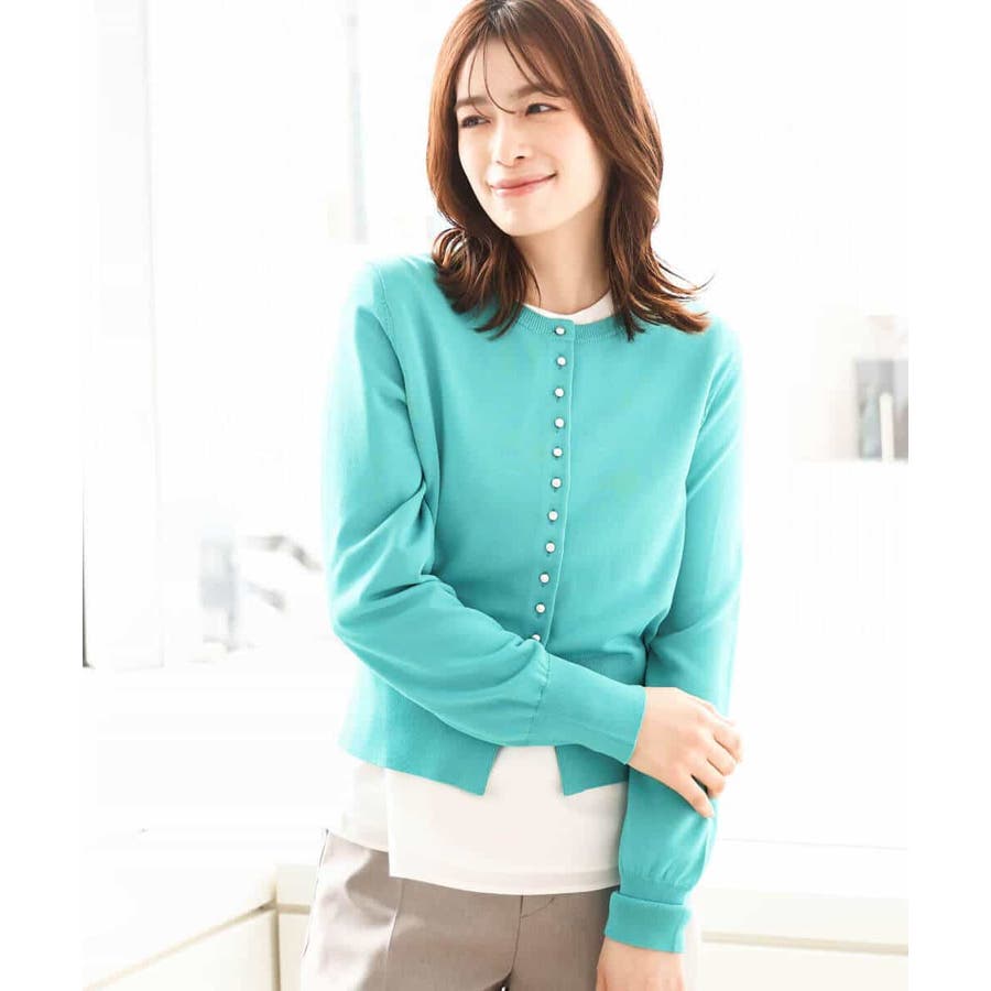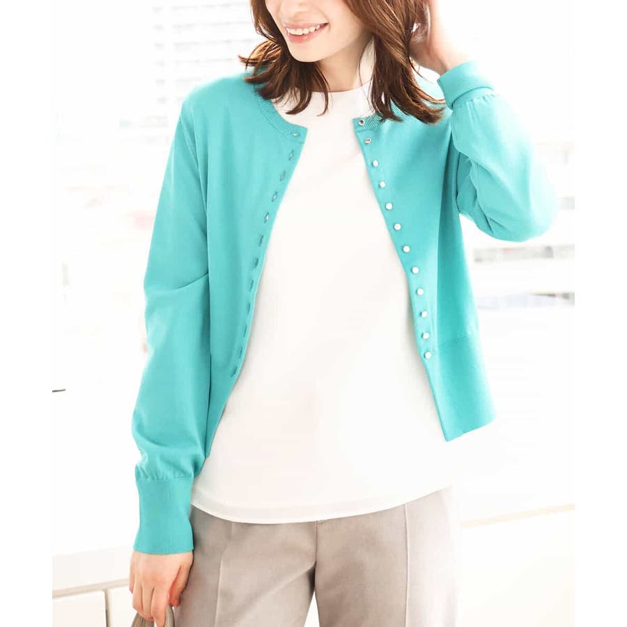 ミニメタル釦ニットカーディガン/接触冷感/洗える/WEB限定サイズあり