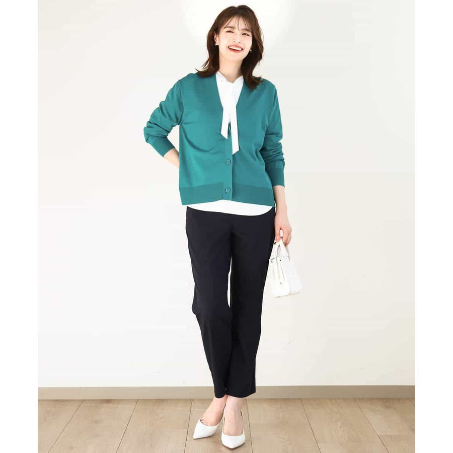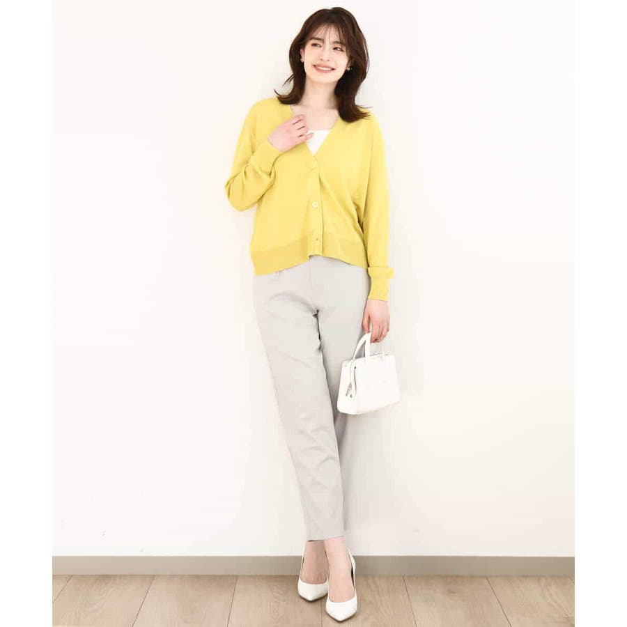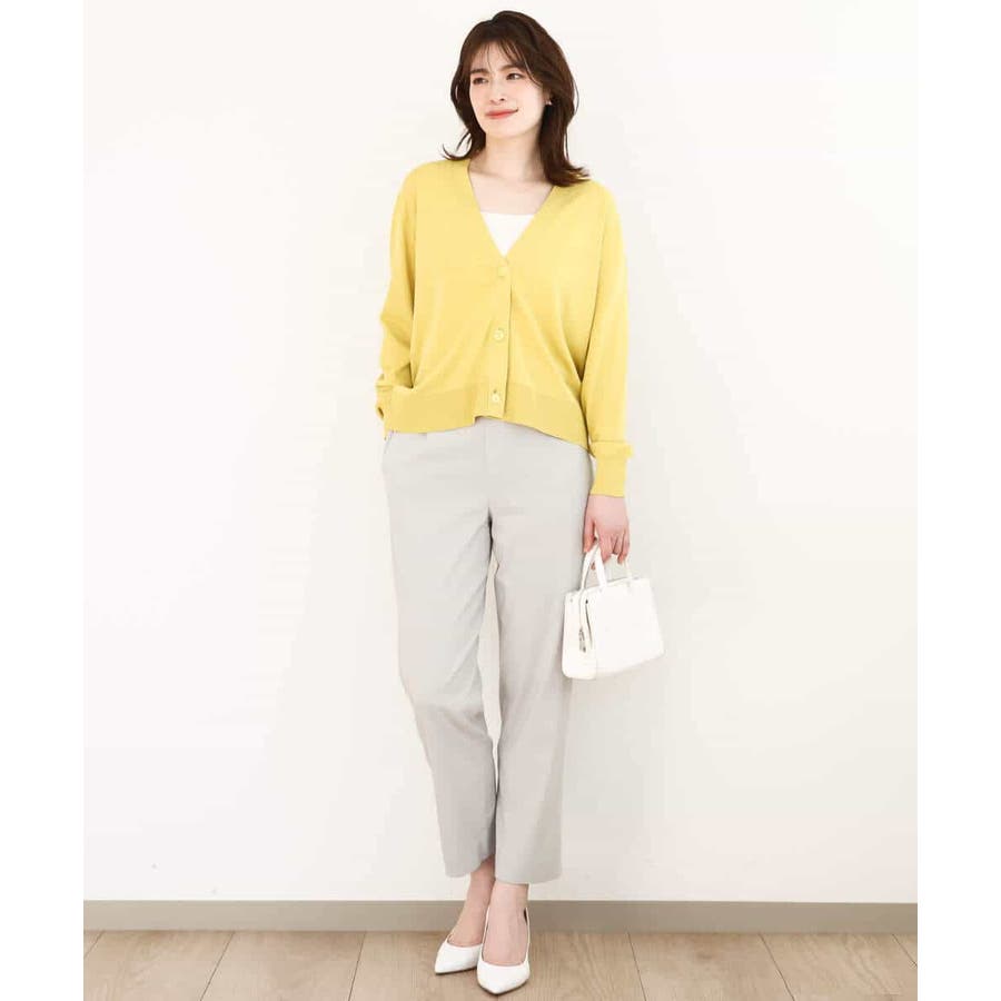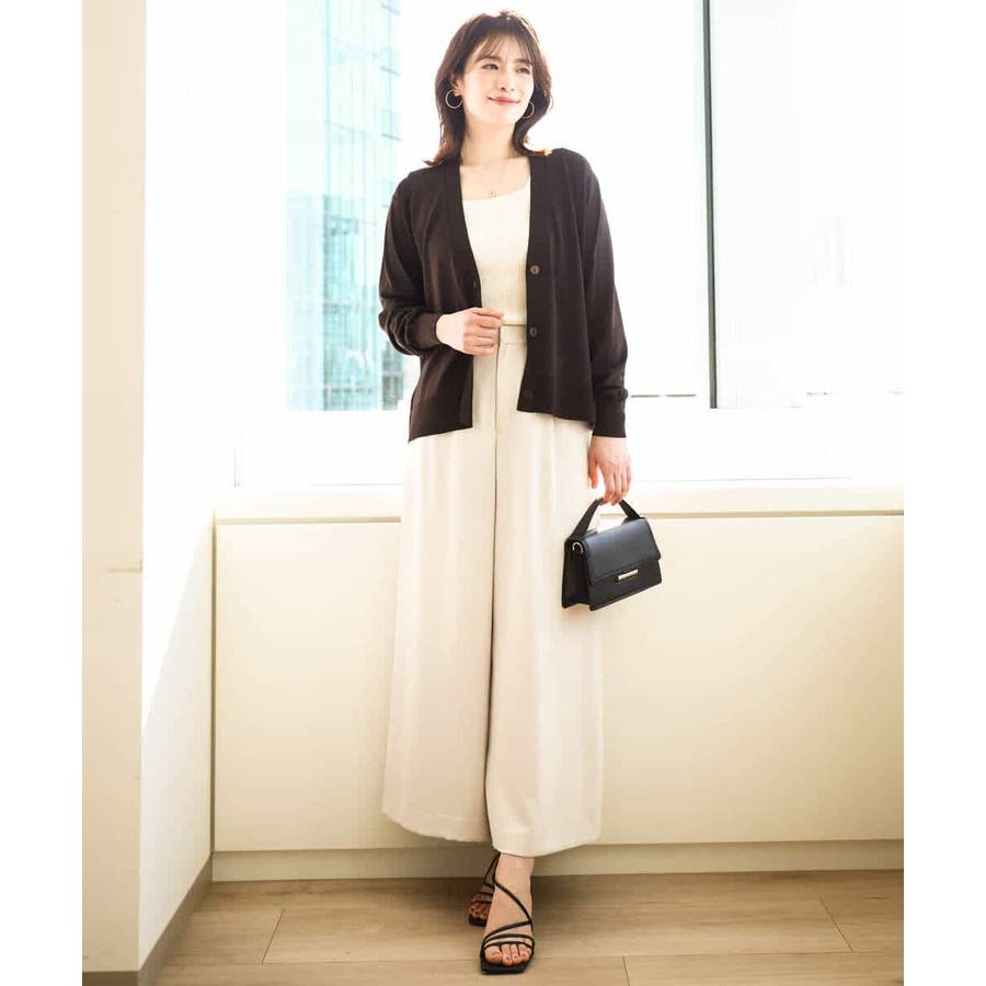 腰が隠れる長すぎず短すぎずなカーディガンは汎用性抜群。ボリュームボトムと合わせてもすっきりと着合わせられます。タンクトップの上にさらっと羽織っても決まるので、春夏秋と長く活躍してくれそう。