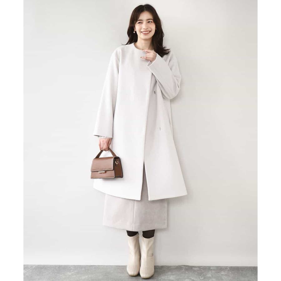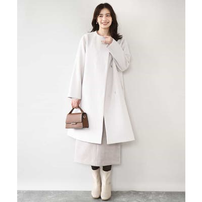 ウール混ノーカラーコート/WEB限定サイズあり