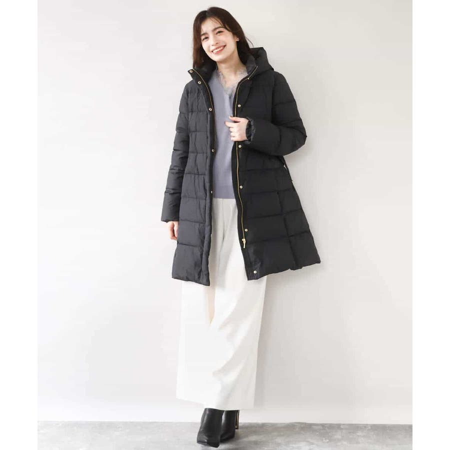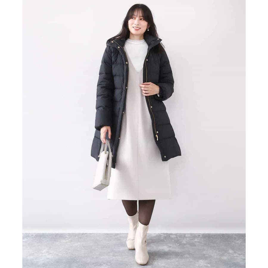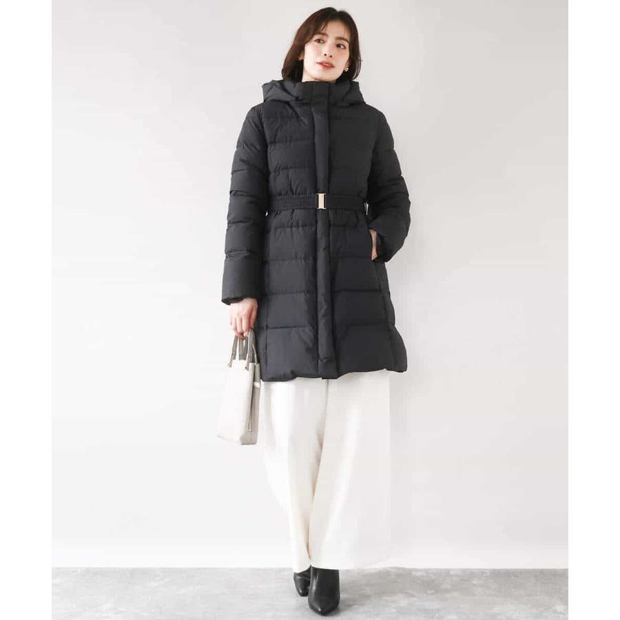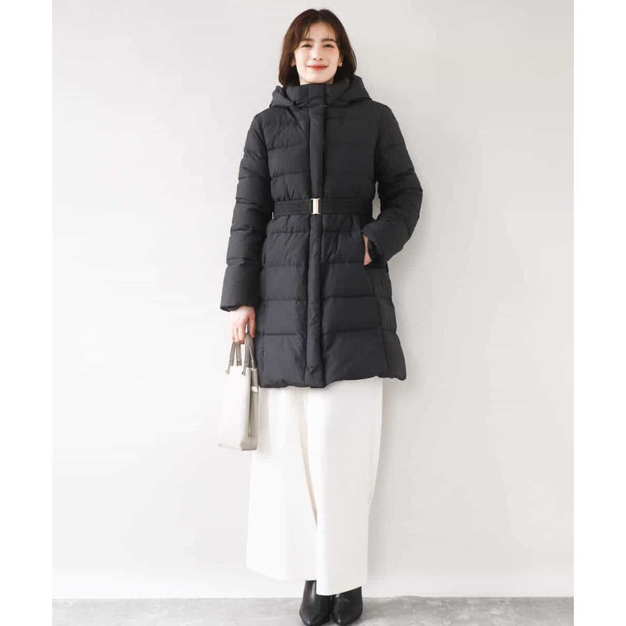 ヒップがしっかりと隠れるロング丈は、パンツ、スカート、ワンピースとインナーを選びません。付属のベルトでウエストマークすればすっきりと着膨れせずに着用できるので、きれいめコーデとも好相性です。