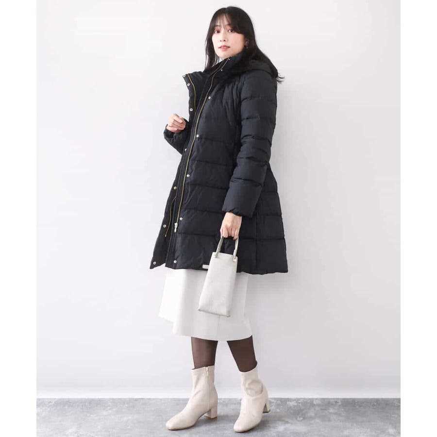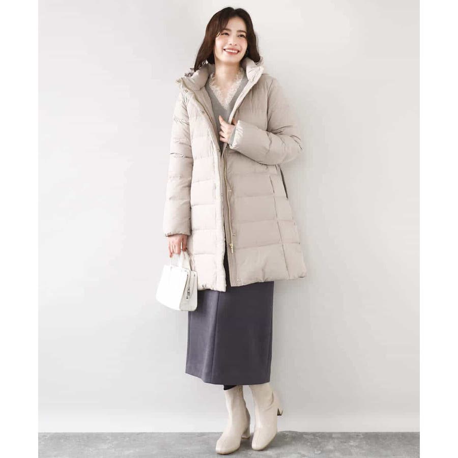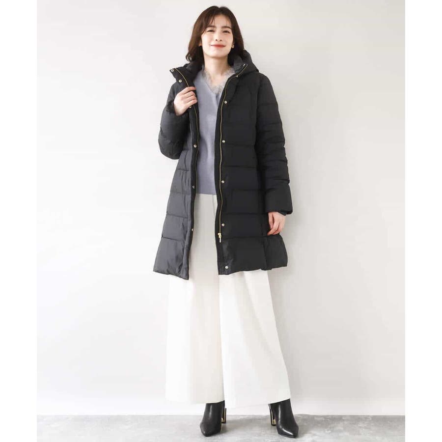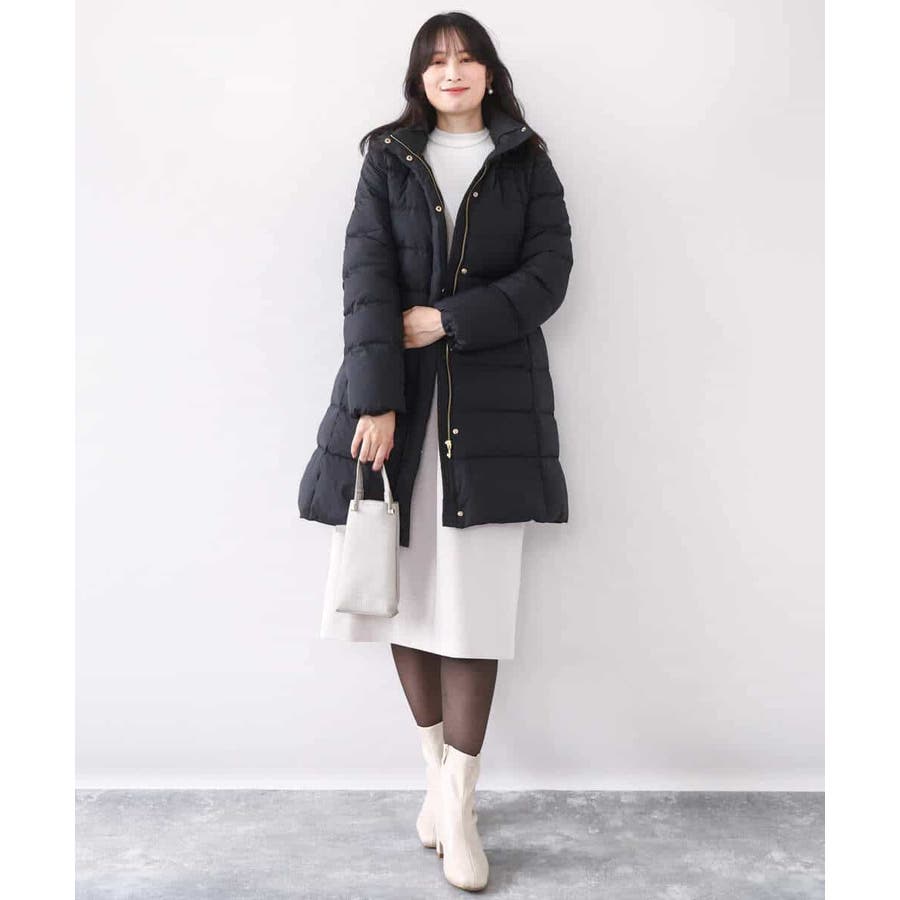 ヒップがしっかりと隠れるロング丈は、パンツ、スカート、ワンピースとインナーを選びません。付属のベルトでウエストマークすればすっきりと着膨れせずに着用できるので、きれいめコーデとも好相性です。