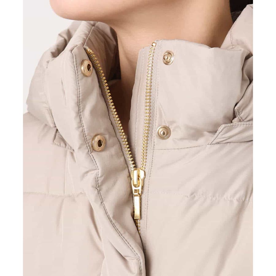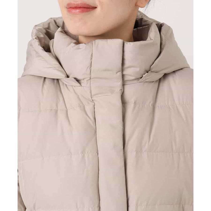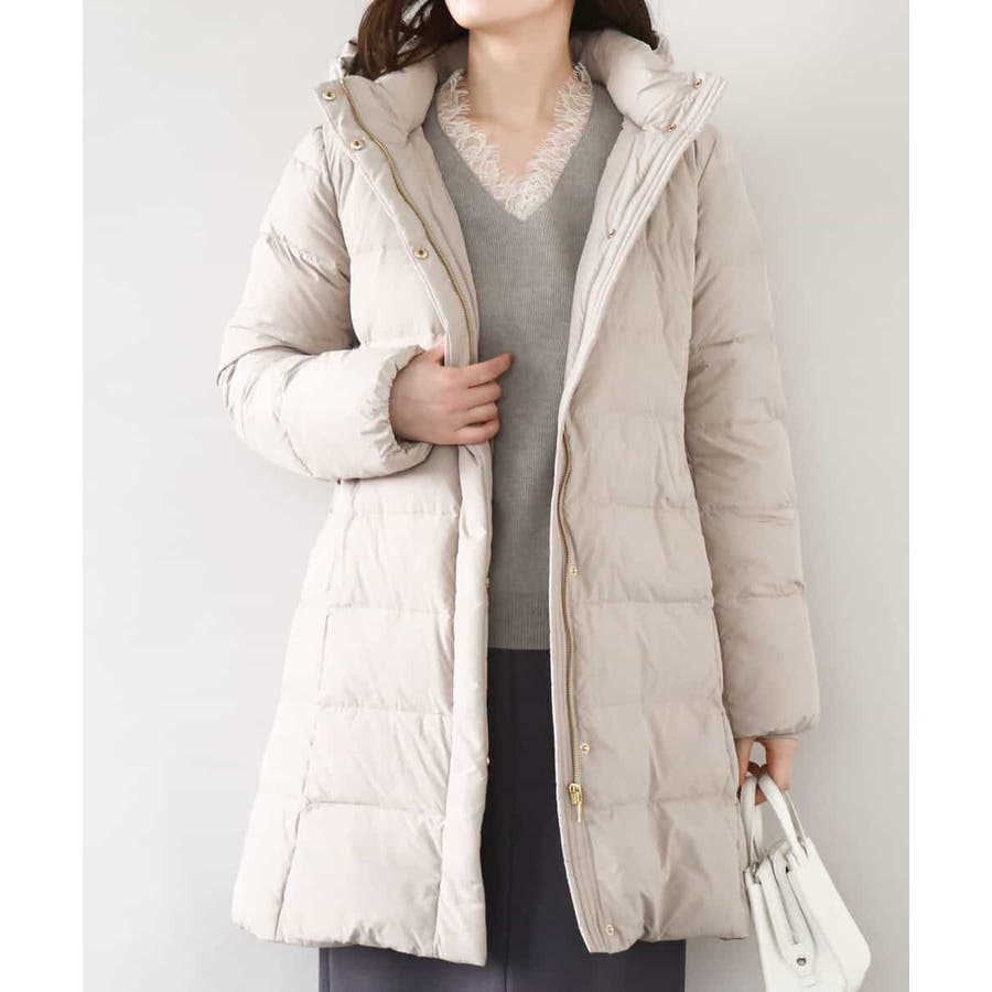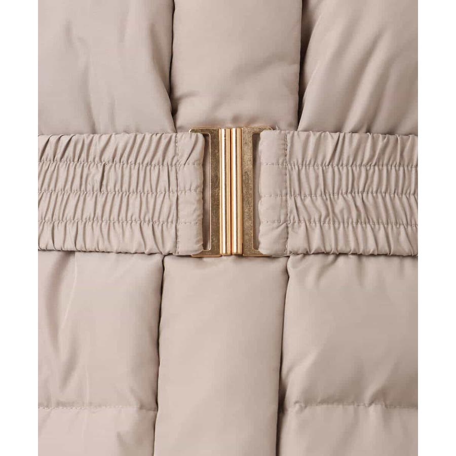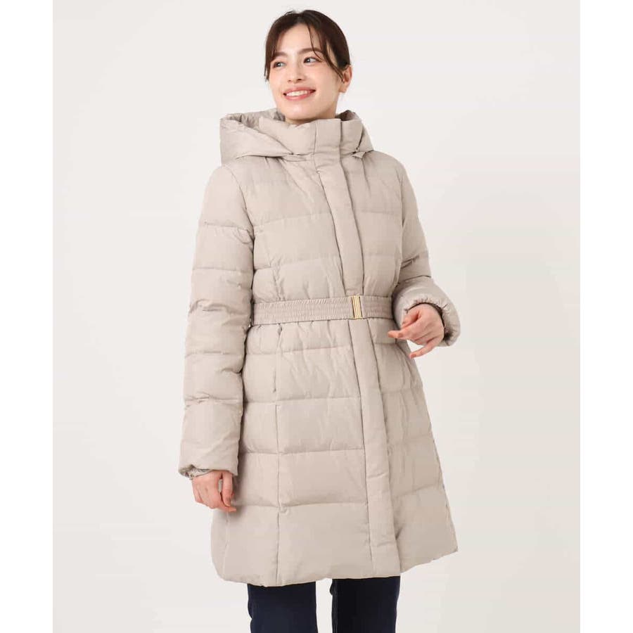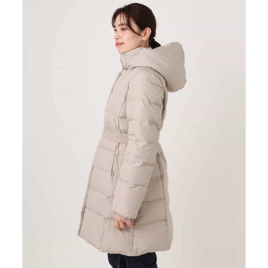 スタイルアップが叶うベルト付きダウンコート。付属のベルトでウエストマークすると女性らしいシルエットを演出。シルエットは全体的にすっきりと見えるように仕上げています。きれいなシルエットで着こなせるようウエストから裾にかけてステッチ幅を調節しています。メタルファスナーやバックルなど、きれいめなデザインにこだわったダウンコートです。