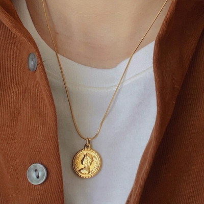 商品説明 | 人気の高いコインモチーフのネックレス。 シンプルなデザインで使い勝手がよく、スタイリングを品よく仕上げてくれます。 |