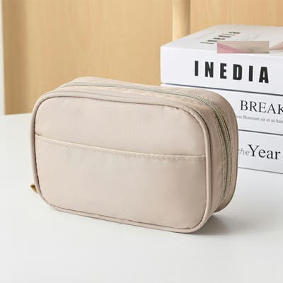 | 商品説明 | シンプルでおしゃれなナイロンポーチ 水を弾く撥水ナイロン素材が、日常の水濡れシーンに対応。 ファスナーにはフェイクレザーの飾りが付いているので、 開けやすくデザインのアクセントに! コの字ダブルジップ開閉で、ガバっと開いて中身が見やすい仕様。 オフィスシーンや通勤~通学時にもフィットするシンプルなポーチです。 化粧ポーチのほかにも、トラベルポーチ、ガジェットケースなどマルチにお使い頂けます。 小さめバッグのバッグインバッグとしてもオススメしたいアイテムです。 |