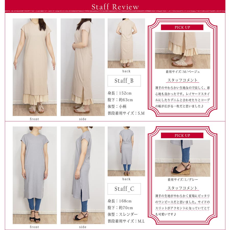 | 商品説明 | 今年らしいワッフル生地のワンピ-スが登場! 見た目が可愛いだけでなく、吸水性にも優れているので夏場でも快適に過ごすことができます。 アクセサリーが映える美ラインなVネック、お顔周りもすっきりとした印象に。 フレンチスリーブで女性らしさも◎ 裾部分にスリットあり、ポケット無しのスッキリとしたデザインです。 そのまま1枚でサラッと着るのはもちろん、 カーデやアウターのインにも大活躍、プリーツスカートやワイドパンツを重ねたレイヤードコーデもオススメです♪ |