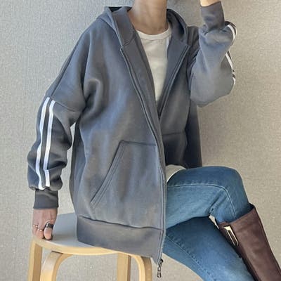 裏起毛オーバーサイズラインパーカー カジュアル ゆるいシルエット
