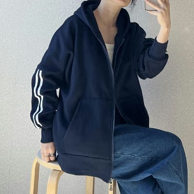 商品説明 | ふんわりあたたかい裏起毛のスポーティー袖ラインパーカー。 ゆったりシルエット&ドロップショルダーデザインでラフにパッと羽織れ、 袖に入った2本ラインがスポーティーな印象に。 前開きZIPがカジュアルスタイルにピッタリ! とーっても使いやすいパーカーになっています! |