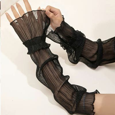 プリーツ×レースアームカバー 紫外線対策 日焼け対策