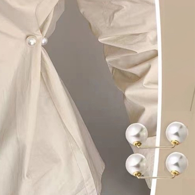 【同色2個セット】ダブルパールピンブローチ アジャスターバックル 調整ピン