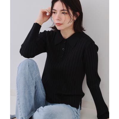 ・すっきりとしたシルエットながら、身体のラインを拾いすぎないワイドリブの編地を使用。