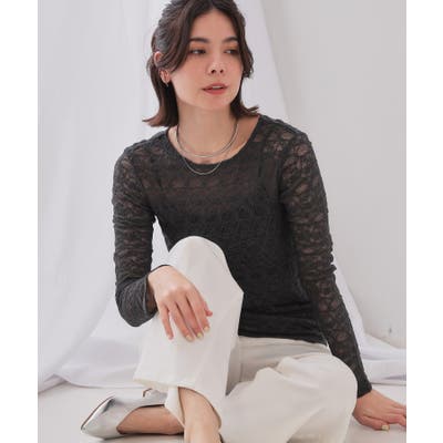 ・シアーのレースがフェミニンさをプラスしてくれるシンプルレーストップスです。