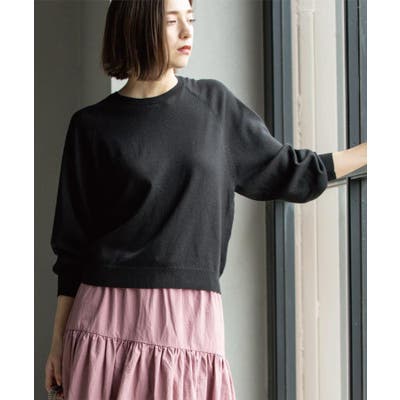 ・良質な素材で編み立てたラグランスリーブのクルーネックニット。