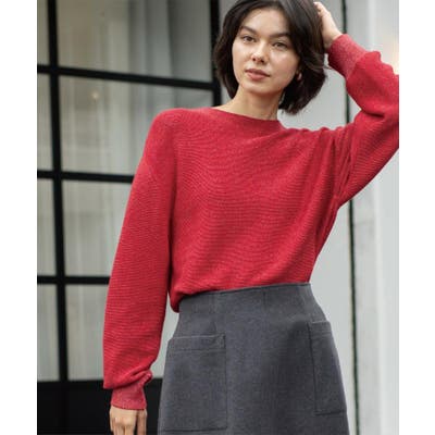 ・ややゆとりを持たせたリラクシーなシルエットのボートネックニット。