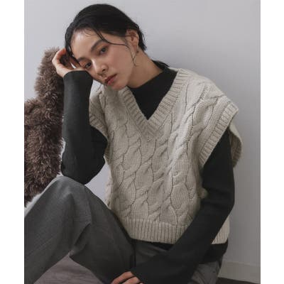 ・立体感のある編み柄が特徴のローゲージケーブル編みニットベスト。