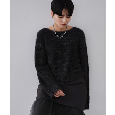・毛足の長いシャギー糸とラメ糸を引きそろえたニットです。