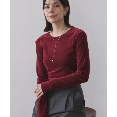 ベロアのような表面感がポイントの、フロッキーチュール素材の長袖トップス