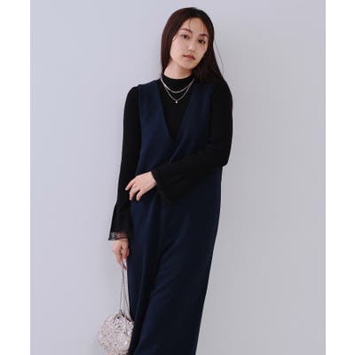 ・前後Vネック開きのデザインが大人っぽく、シャープな印象で着られます。