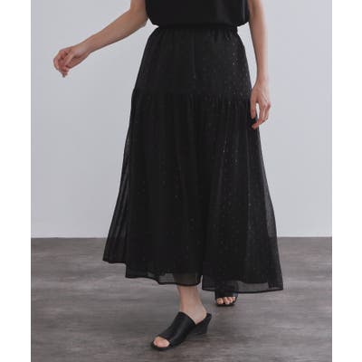 ・さりげないラメドットジャカード素材がポイントのイージーティアードスカート。