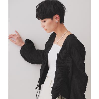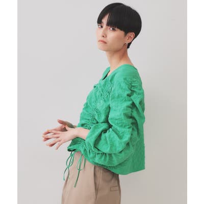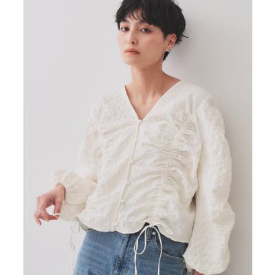 ふくれジャカードシャーリングデザインブラウス【洗濯機洗い可】