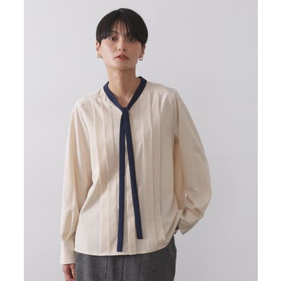 ・襟部分とタイをバイカラーデザインにした、クラシカルなブラウス。