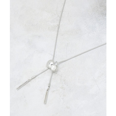 シャープなメタルチェーンにパール調ビジューを配したスライド式ネックレス。